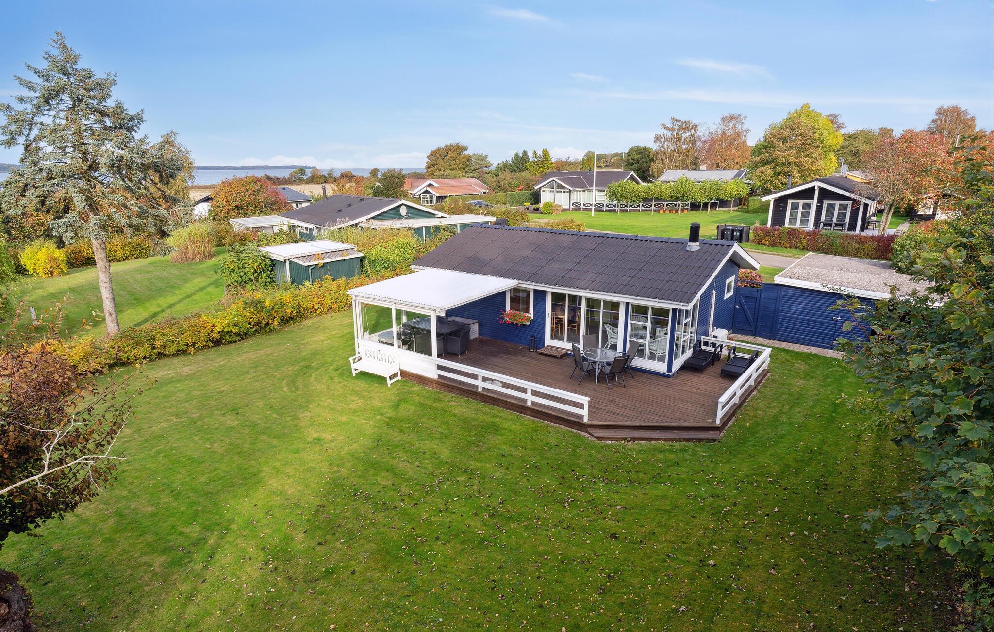 Hyggeligt feriehus i træ nær stranden på Tåsinge med terrasse, brændeovn og nærhed til Svendborgs naturskønne omgivelser.