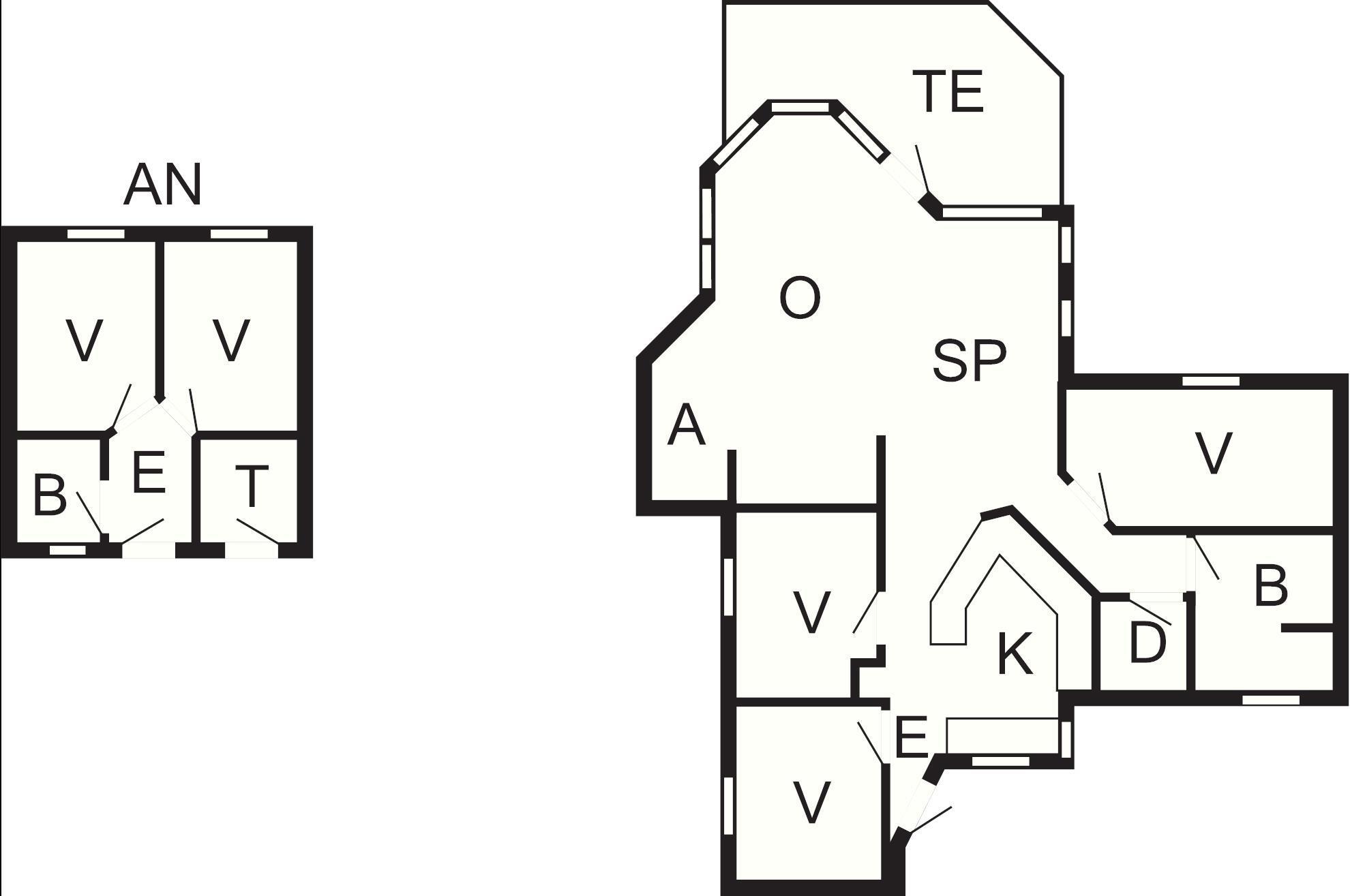 Der er tre soveværelser og et badeværelse. Der er et anneks med yderligere to soveværelser, et badeværelse og et køle-/fryseskab. Der er tv med mulighed for at streame egne tjenester. Ikke tilgængelig for ungdomsgrupper.