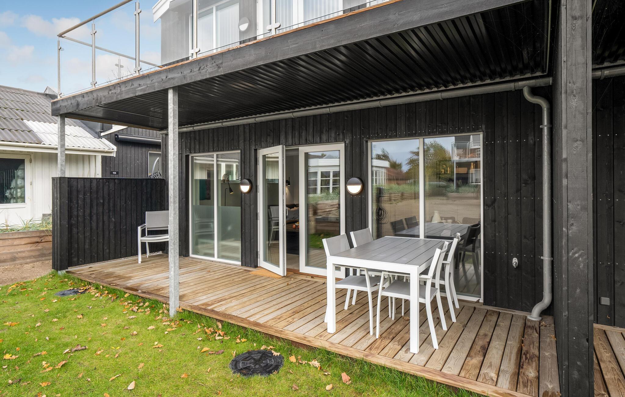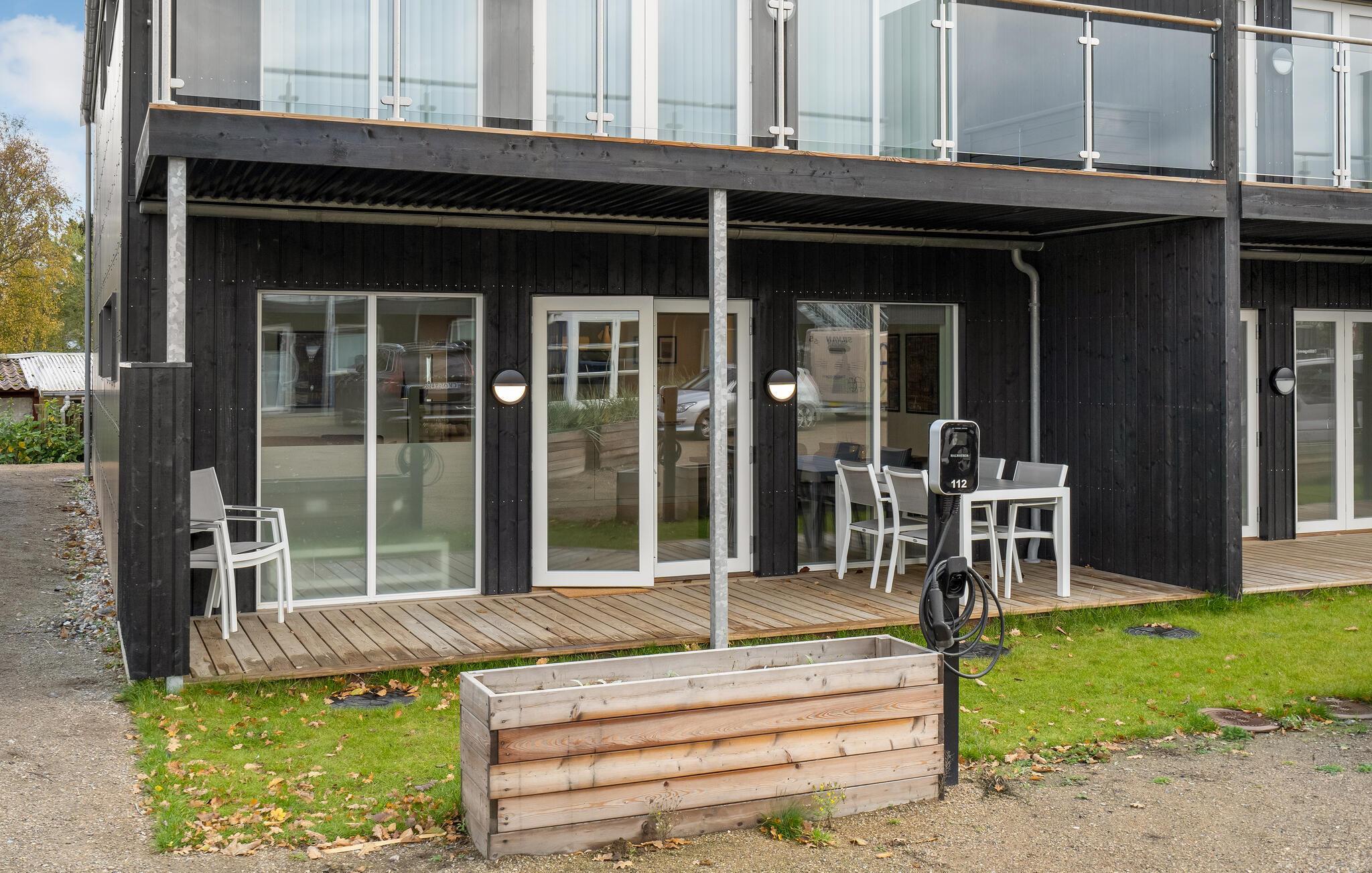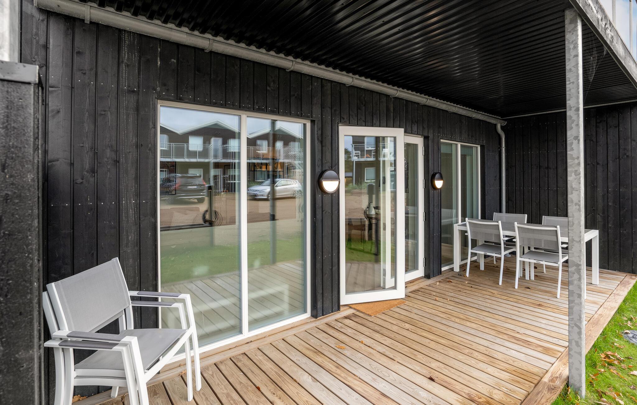 Moderne og lys ferielejlighed nær Stillinge Strand med overdækket terrasse og gode faciliteter til en afslappende ferie.