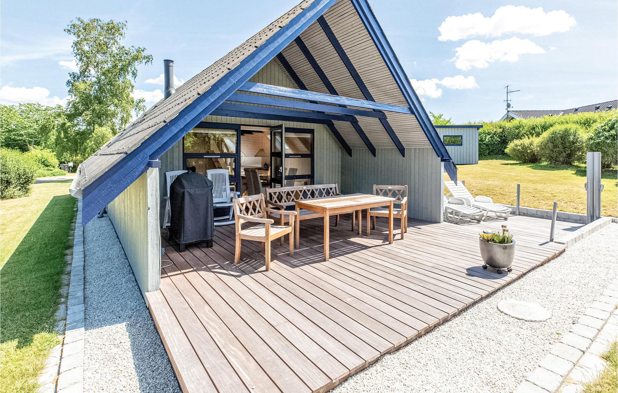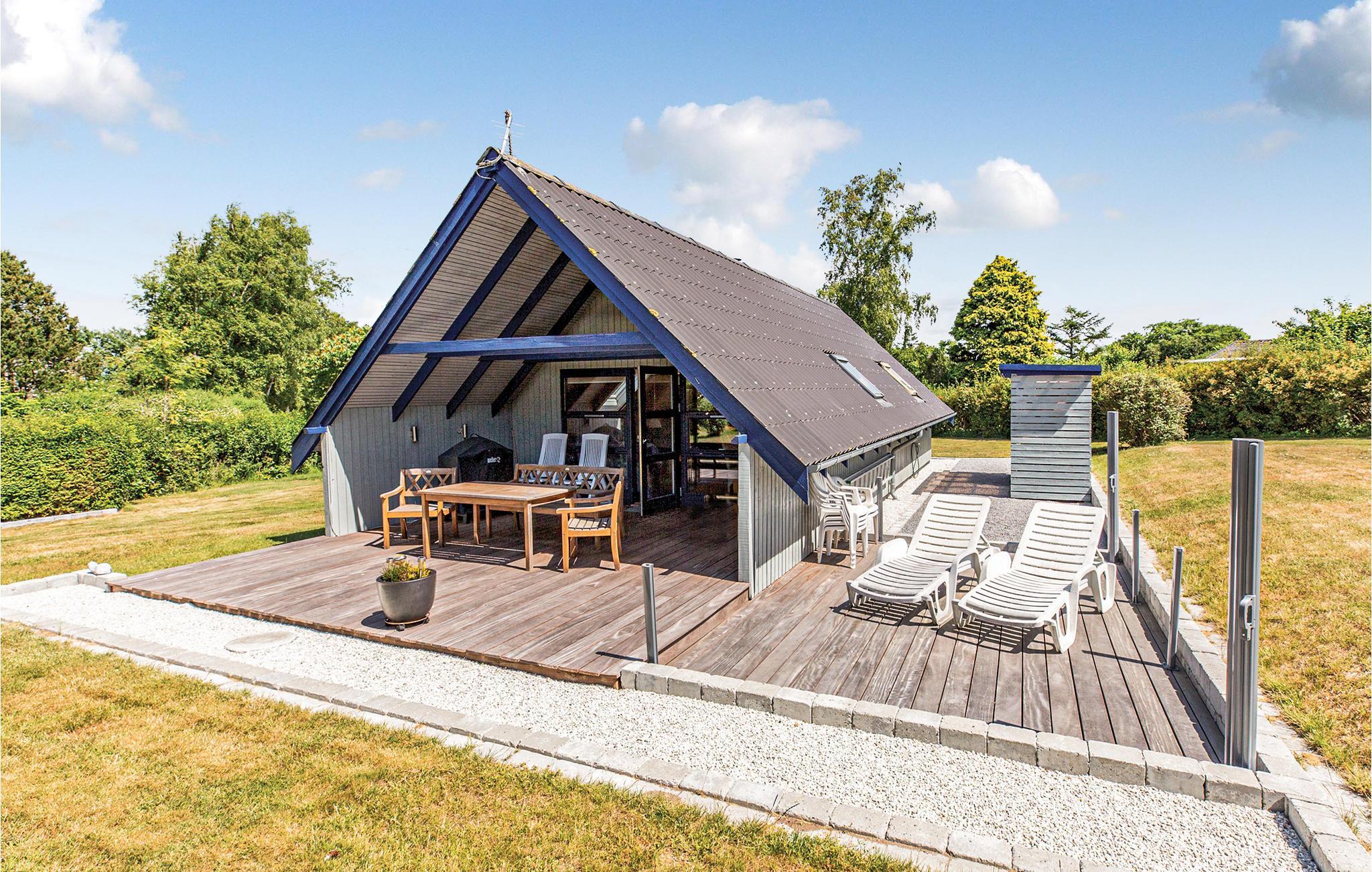 Hyggeligt træhus tæt på Stillinge Strand med åben og overdækket terrasse, ideelt til en afslappende ferie ved vandet.