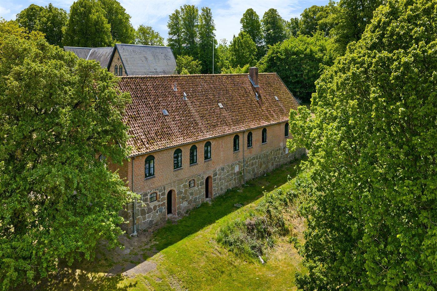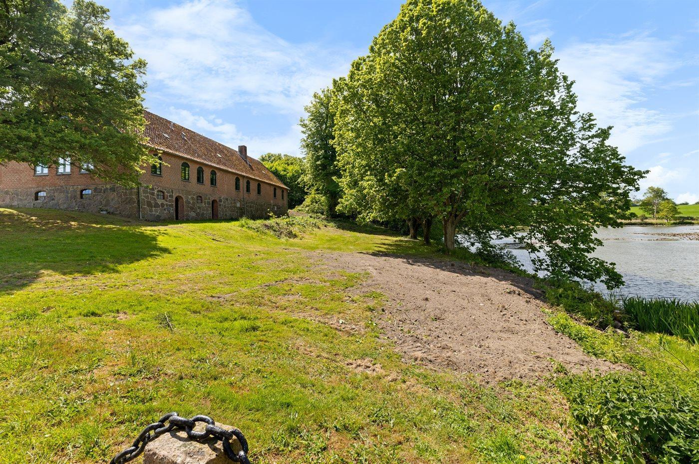 Fra huset er der kort gåafstand til stranden via godsets private vej, som går helt ned til vandet.