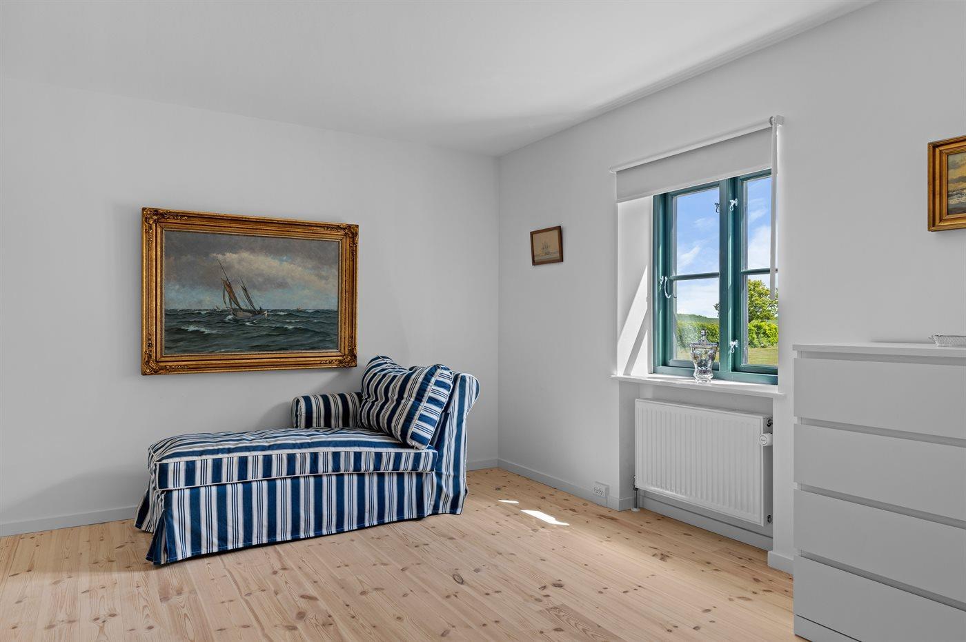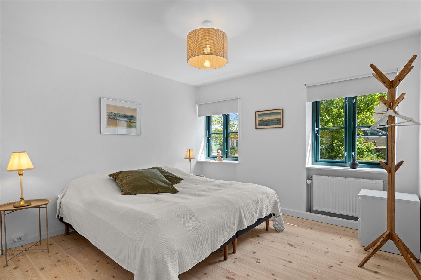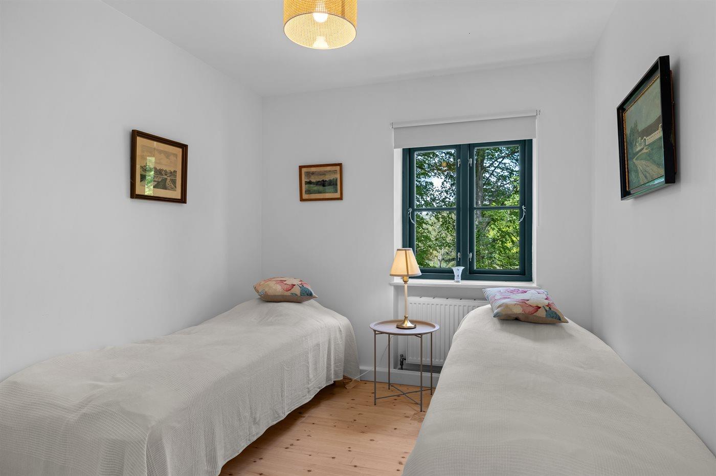 Der er i alt 7 soveværelser. Sovepladserne fordeler sig på: 6 sovepladser i dobbeltsenge. 8 sovepladser i enkeltsenge. Derudover er der 2 stk. barnesenge.