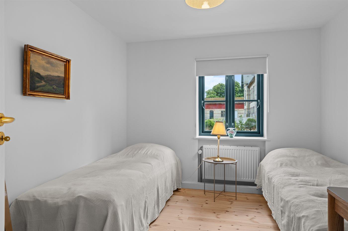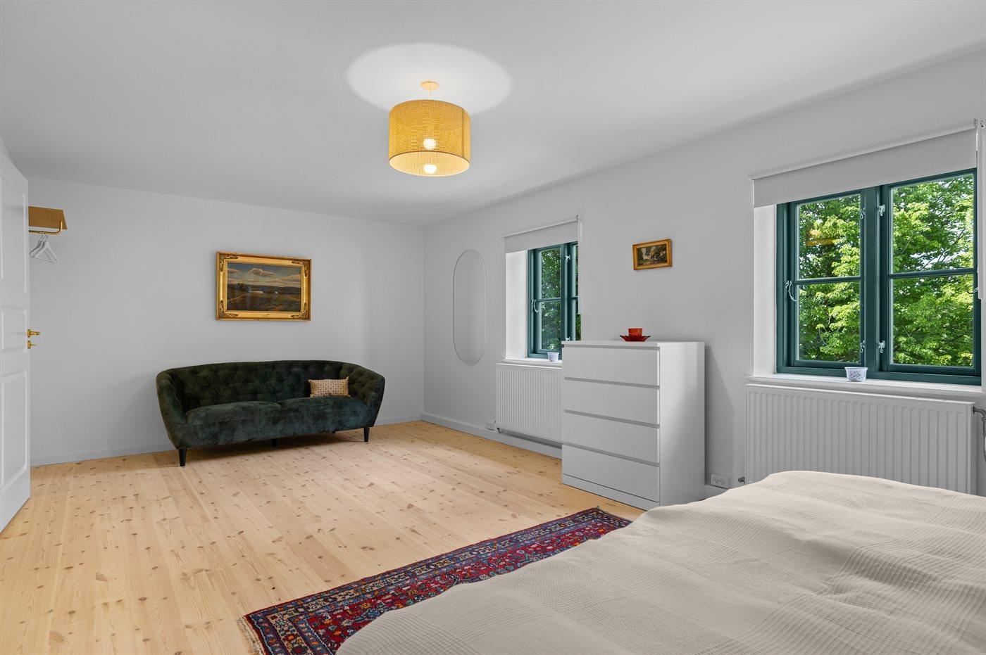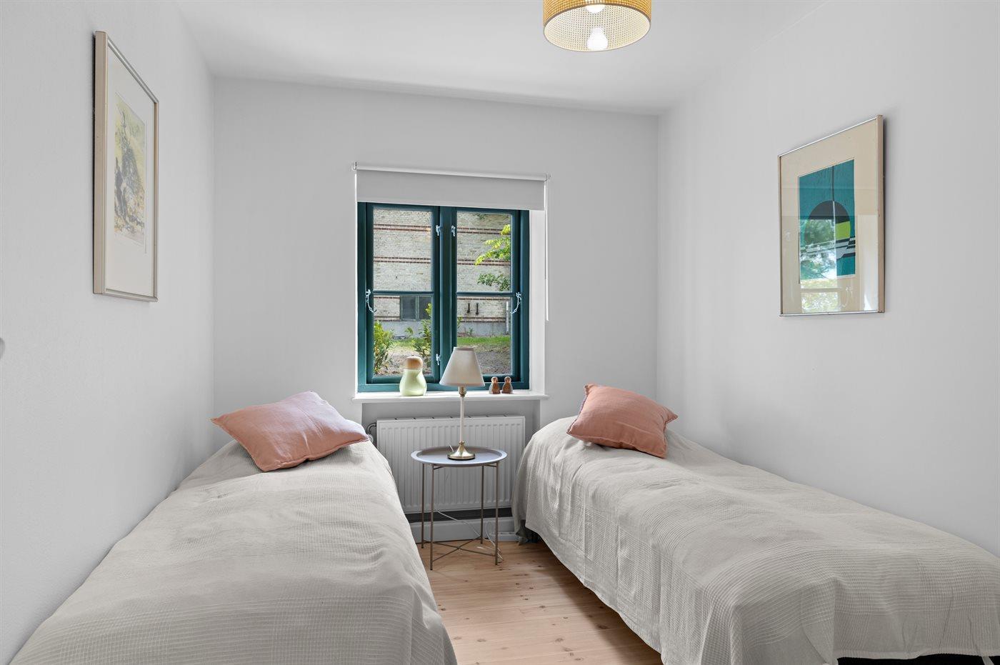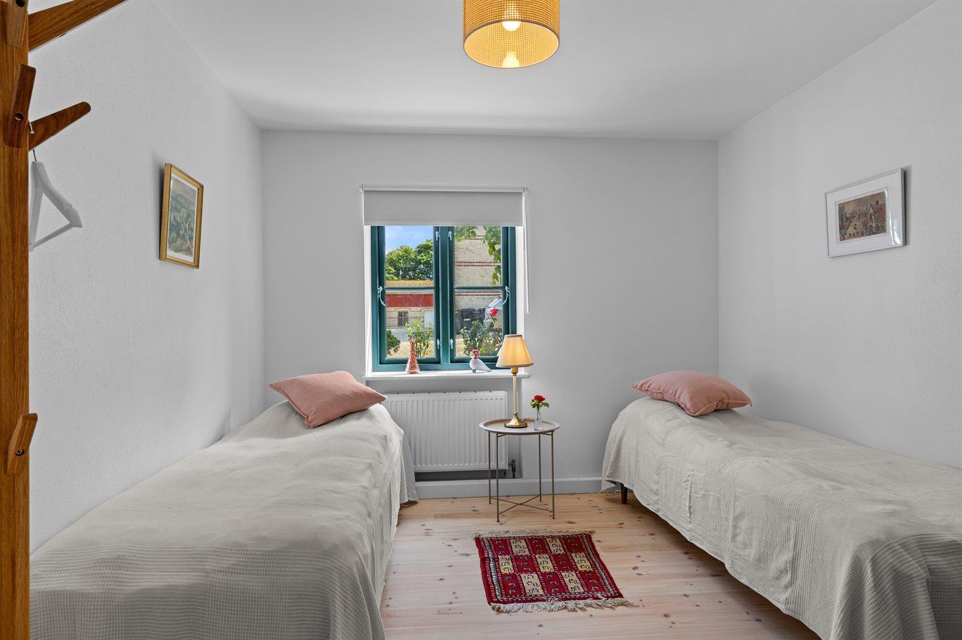 Der er i alt 7 soveværelser. Sovepladserne fordeler sig på: 6 sovepladser i dobbeltsenge. 8 sovepladser i enkeltsenge. Derudover er der 2 stk. barnesenge.