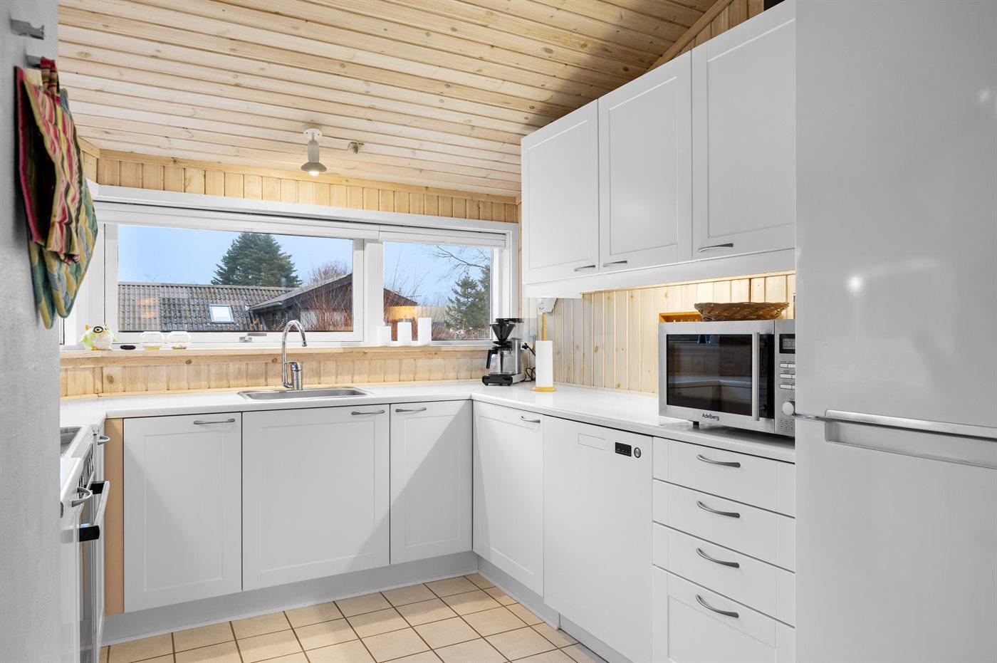 Køkkenet er udstyret med 1 køleskab. Der er 4 keramiske kogeplader, varmluftovn, mikrobølgeovn samt opvaskemaskine.