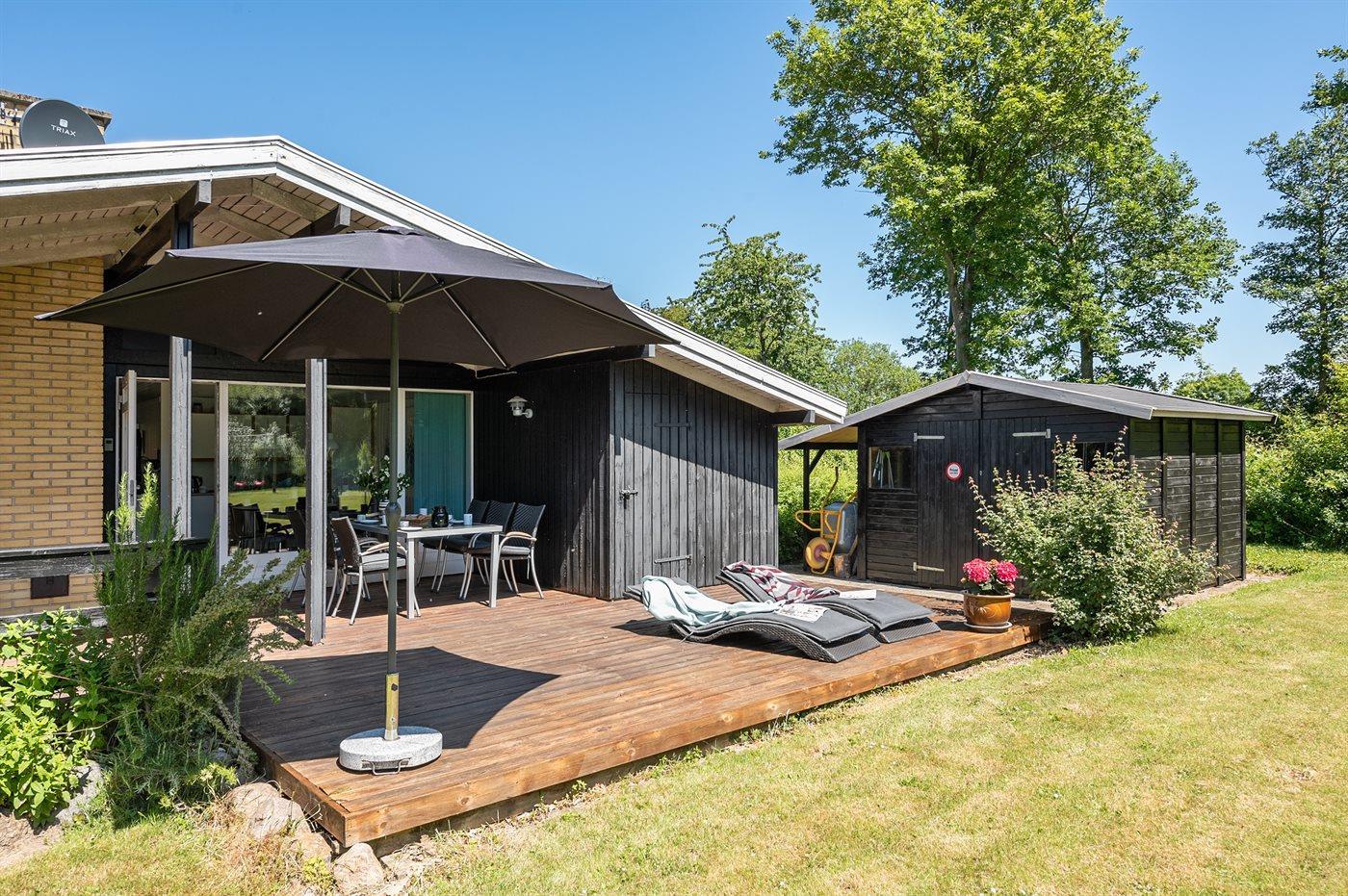 Til huset hører flere gode terrasseområder, og på grunden er der god plads til udendørs aktiviteter.