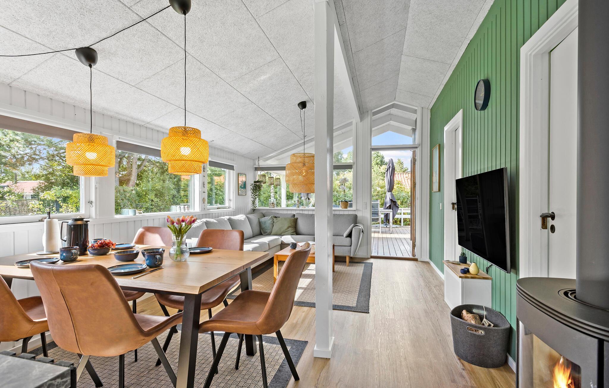 Velkommen til et herligt hus til jeres feriedage på Langeland. Her venter der nogle ubekymrede stunder i de skønneste omgivelser. Huset ligger på en flot åben grund, som er indrammet af buske og høje træer. Overalt emmer boligen af ro, kvalitet, lys og luft samt skønne farveindslag. Gør klar til en hyggelig middag i opholdsrummet, hvor lyset falder ind fra flere sider og læn jer godt tilbage i sofahjørnet, når I vender hjem fra dagens udflugter. På en kølig aften er det ekstra stemningsfuldt med ild i brændeovnen.