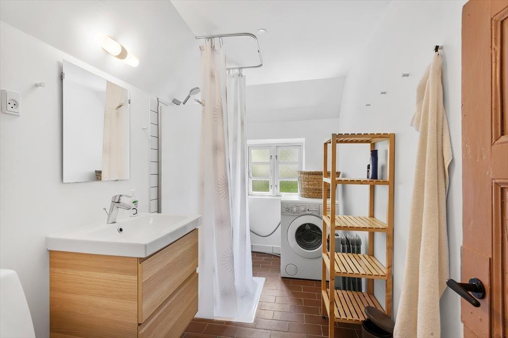 Træd ind i dette smukke landsbyhus, der oser af ægte ærøsk charme. Med et traditionelt stråtag og højt til loftet stråler dette hjem af historie og moderne komfort. Det åbne køkken og spisepladsen er hjertet i huset, hvor I kan nyde feriens måltider sammen. Et lyst badeværelse med vaskemaskine tilføjer praktiske bekvemmeligheder, mens den rummelige tv-stue med brændeovn indbyder til afslapning og hygge.