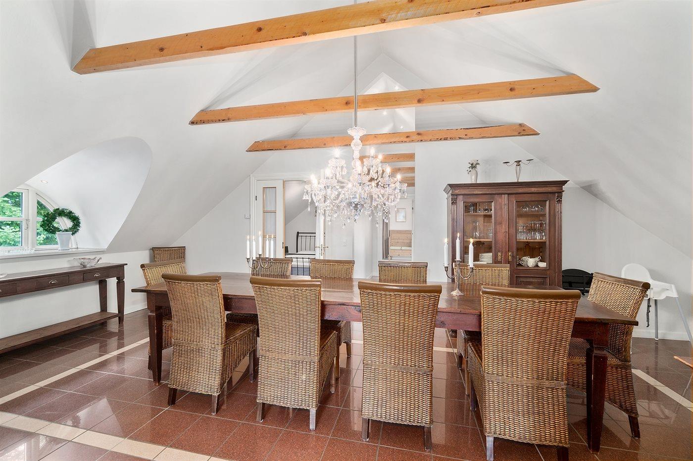 Der er i alt 5 soveværelser. Sovepladserne fordeler sig på: 10 sovepladser i dobbeltsenge. Derudover er der 2 stk. barnesenge.