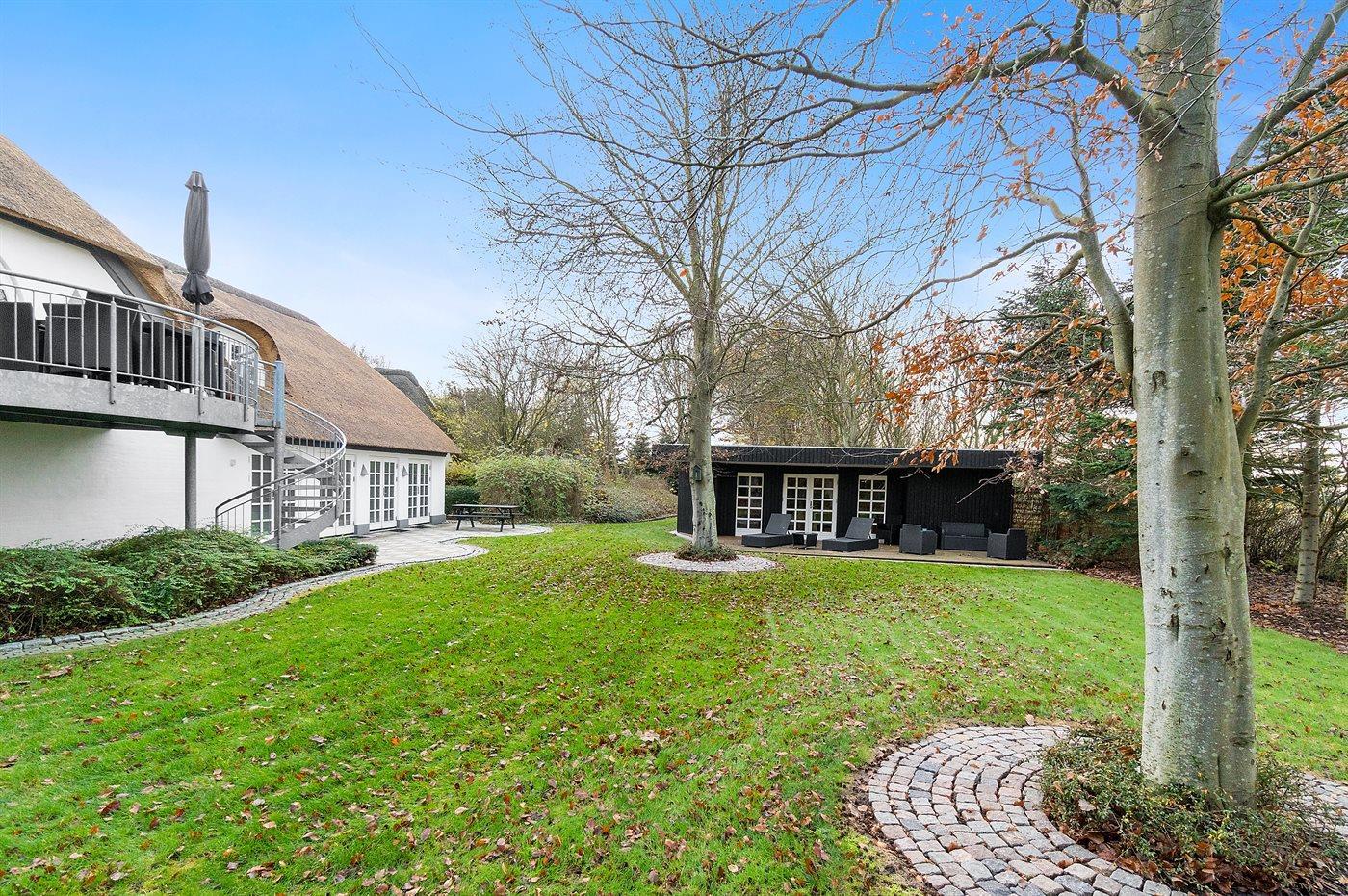 Et smagfuldt indrettet sommerhus - med sans for detaljerne. Huset er beliggende på en stor, parklignende grund, hvor der bl.a. findes en sø med ænder og fugle.