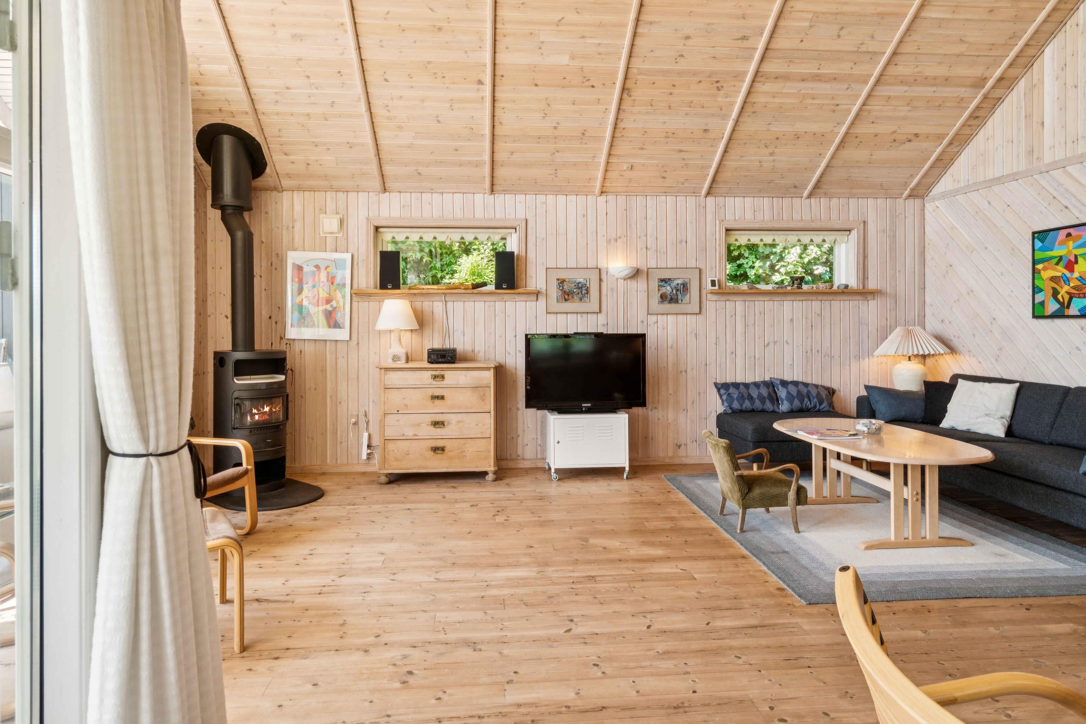 I Naturpark Åmosen i rolige, naturskønne omgivelser tæt på både strand, å og åbne enge ligger dette indbydende sommerhus med god plads til hele familien. Her er højt til himlen og fri udsigt til landskabet omkring. Huset giver rammerne for en afslappende ferie i det vestlige Sjælland. Indendørs venter 100 veludnyttede kvadratmeter med en varm og enkel indretning. Huset rummer tre soveværelser fordelt på hovedhus og anneks – med fire senge i huset og tre i det tilhørende anneks, som nås via værkstedet. Her er plads til både samvær og ro. Stuen er husets samlingspunkt med brændeovn og god plads omkring spisebord og sofa. Store, høje vinduer giver et flot lysindfald og åbner for udsigten til den fredede eng. Køkkenet er funktionelt og integreret i opholdsrummet, så man nemt kan være sammen – også mens maden tilberedes. Der er internet, varmepumpe og brændeovn, hvilket gør huset anvendeligt året rundt. Den hyggelige atmosfære indbyder til lange aftener, uanset om det er med spil, en god film eller bare ro. Udelivet nydes på terrassen med frit udsyn over grønne omgivelser. Området er ideelt til ferie i roligt tempo. Kun én kilometer fra huset ligger stranden, som inviterer til gåture, badning og afslapning. Tæt på finder man også engarealer og Halleby Å, hvor naturen er tæt på og varieret. Et godt sted for dem, der vil fiske, vandre eller bare trække vejret dybt. Syd for Kalundborg gemmer sig en autentisk feriestemning uden trængsel. Besøg blandt andet Reersø som ligger tæt på huset. Reersø er et super skønt område med en lille havn, ølbryggeri, is, kro, fiskeri og vandreture. Her er cykelruter, små havne og lokalt liv. Det flade landskab gør det oplagt at udforske på cykel. Børnevenlige badestrande, fuglerige områder og stille veje gør området velegnet til både par og familier. Dette sommerhus tilbyder en afslappende base i grønne omgivelser med nem adgang til naturens mange tilbud. En ferieform, hvor man selv vælger tempoet. Obs, udlejes ikke til erhversmæssigt brug.