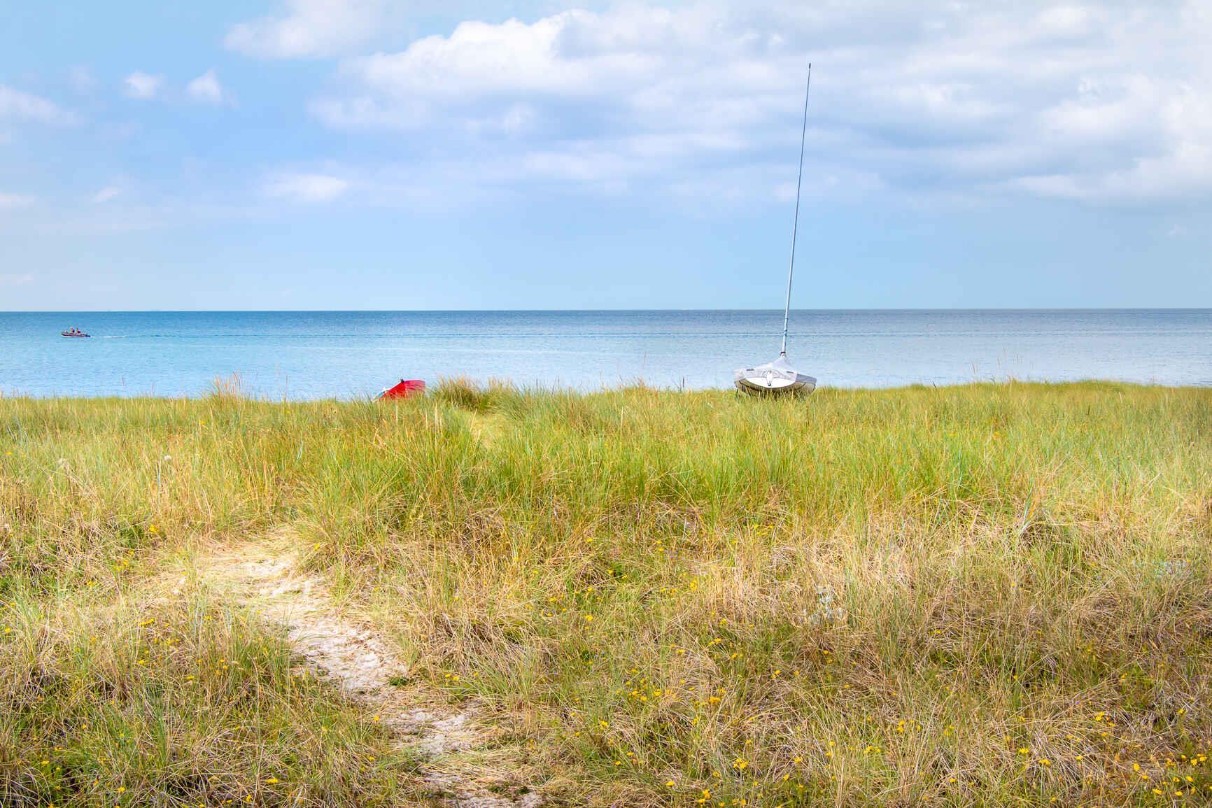 Arkitekttegnet sommerhus fra 1976 nær Bjerge Sydstrand med fred og smuk natur, kun 350 m fra sandstrand.