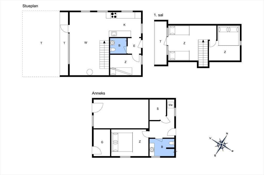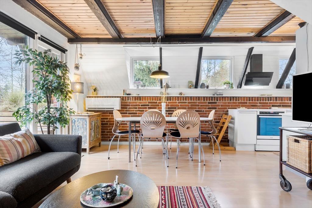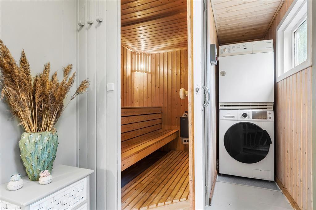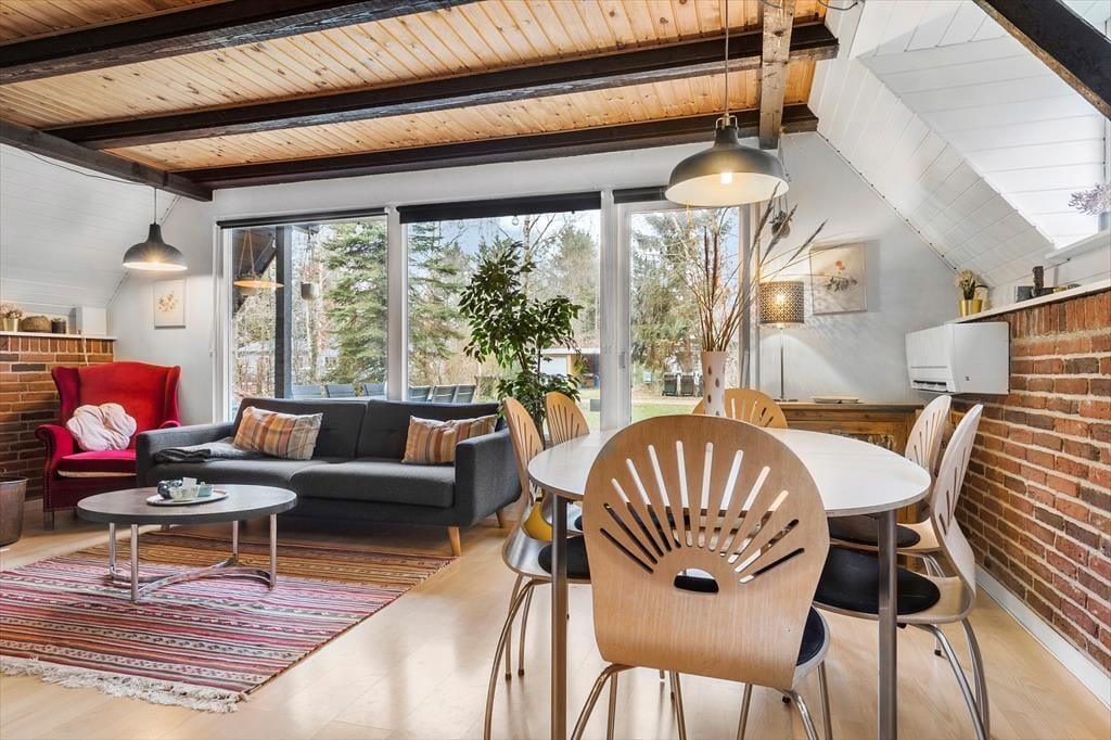 Til dette kreative og hjemlige familie sommerhus, hvor der er plads til hygge og leg og hvor både børn, voksne og hunde føler sig hjemme. Her mødes I af en hyggelig stue, der indbyder til samvær - Brændeovnen er perfekt til kølige aftener, hvor kortspillet og de gode samtaler tager over. Stuen er forbundet med spisepladsen og det åbne køkken, så I kan nyde hinandens selskab, når feriemaden kokkereres. Mens maden simrer i køkkenet, samles I omkring spisebordet til hygge, spil, snak og grin. I huset finder I tre soveværelser. Ovenpå er der et hyggeligt værelse med dobbeltseng samt et med to enkeltsenge, hvorfra du kan gå ud på balkonen og nyde morgenkaffen og stilheden. I stueetagen finder du husets sidste værelse, hvor der er køjeseng, som børnene vil elske samt et lille badeværelse. I annekset er der yderligere et værelse med dobbeltseng, et ekstra badeværelse, en sauna og det er også i annekset, at der er vaskemaskine og tørretumbler. På forsiden af annekset er der aktivitetsrum med pool bord, bordtennis og bordfodbold, så der er mulighed for lidt underholdning, hvis vejret bliver for træls. Annetset egner sig bedst til brug om sommeren.