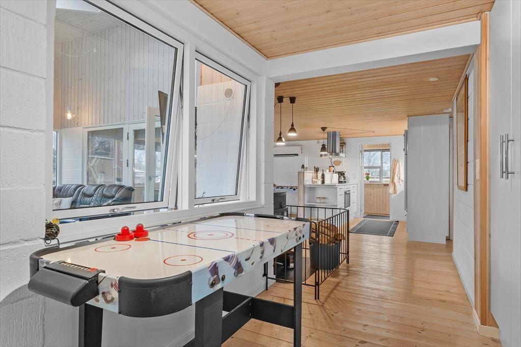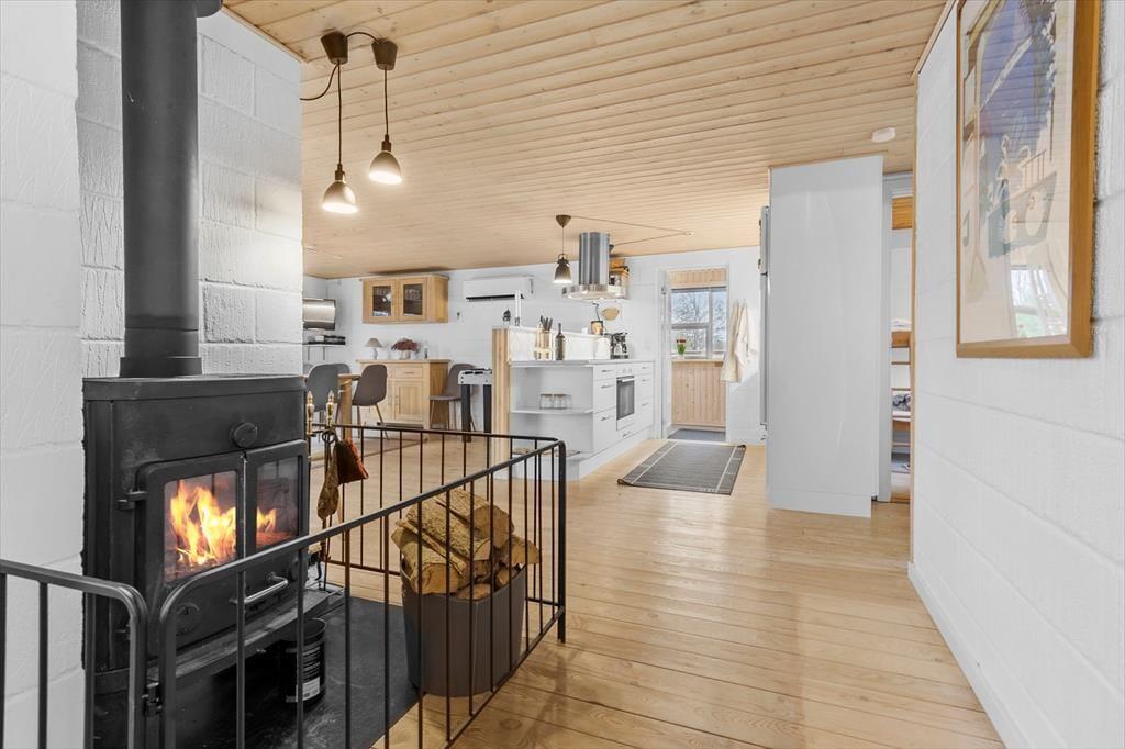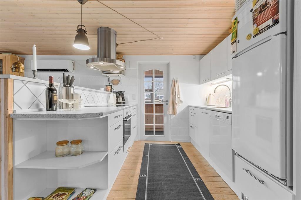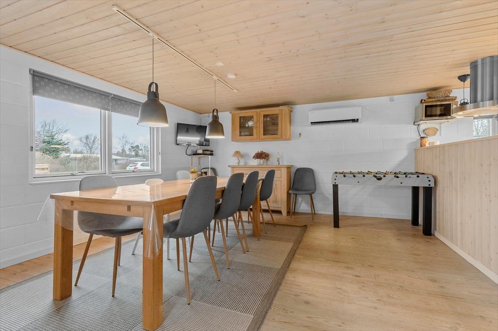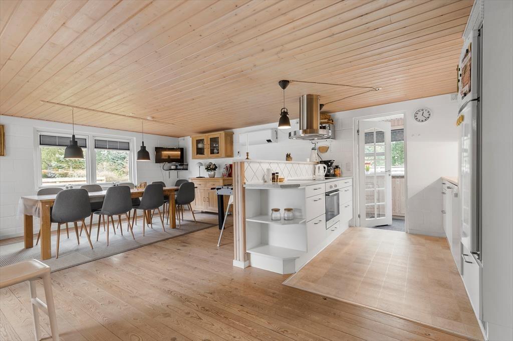 I noget af det nordligste Djursland finder I dette sommerhus, der blev renoveret i 2021. Når I træder ind i huset, bliver I venligt mødt af det hyggelige køkken-alrum, hvor brændeovnens varme blander sig perfekt med den moderne komfort fra varmepumpen. Køkkenet er fuldt udstyret med alt, hvad I behøver for at kunne lave lækker feriemad og betingelserne for en afslappet ferie ligger lige foran jer. Fra spiseafdelingen i køkken-alrummet er der en dør, der fører jer videre ind i den indbydende stue, hvor I kan slappe af efter en dag fyldt med eventyr og samvær, se tv eller læse en god bog. I kan udfordre hinanden i air hockey eller bordfodbold og lade vinderen bestemme, hvad I skal lave i morgen. Det lyse og fine badeværelse er et rart sted til at blive frisket op i. Huset har god plads til alle med fire dejlige soveværelser. Der er to værelser med dobbeltsenge, ét værelse med to enkeltsenge, som kan laves om til en dobbeltseng, samt et værelse med køjeseng, som børnene vil elske.
