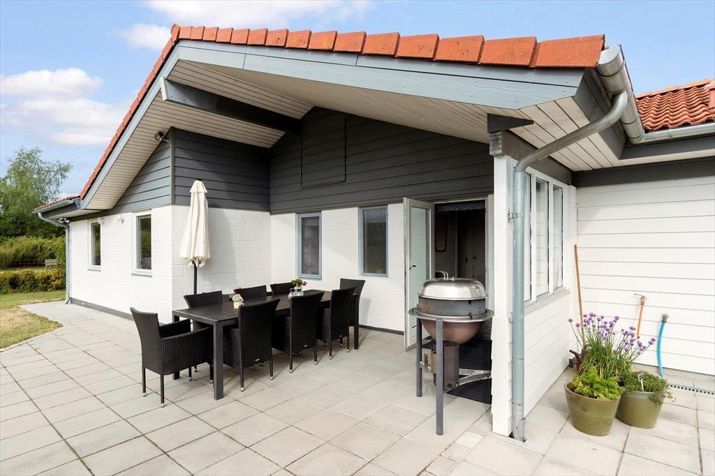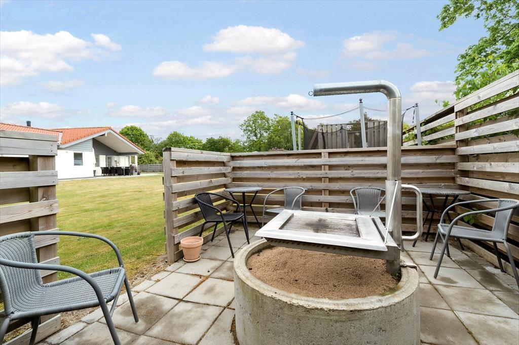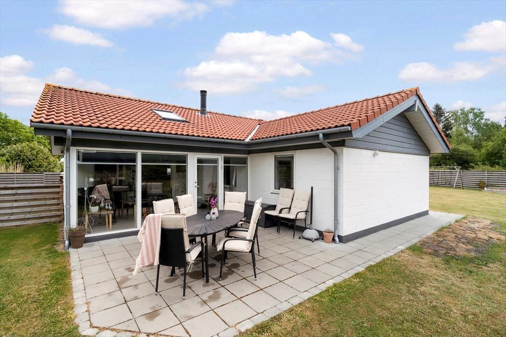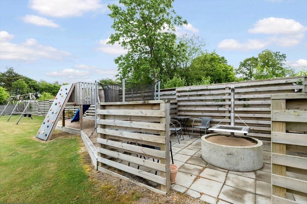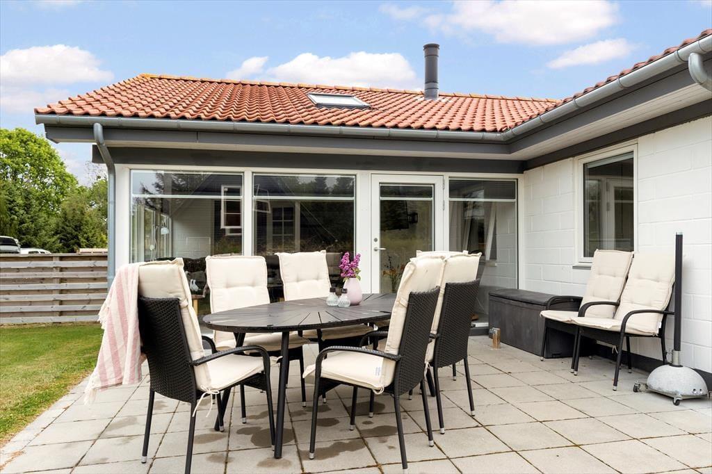 Sommerhuset ligger i et dejligt sommerhusområde på en indhegnet grund, kun 400 meter fra den skønne badestrand. Haven er stor og ideel til leg og boldspil, så børnene kan boltre sig, mens de voksne slapper af. Her er to terrasser - begge udstyret med havemøbler, liggestole og en grill – perfekte steder at nyde den friske luft og den smukke udsigt over landskabet. Uanset om I ønsker at tage en rolig stund i morgensolen eller nyde en grillmiddag i de lune aftentimer, er der masser af plads og anledning til at gøre ferien ekstra behagelig.