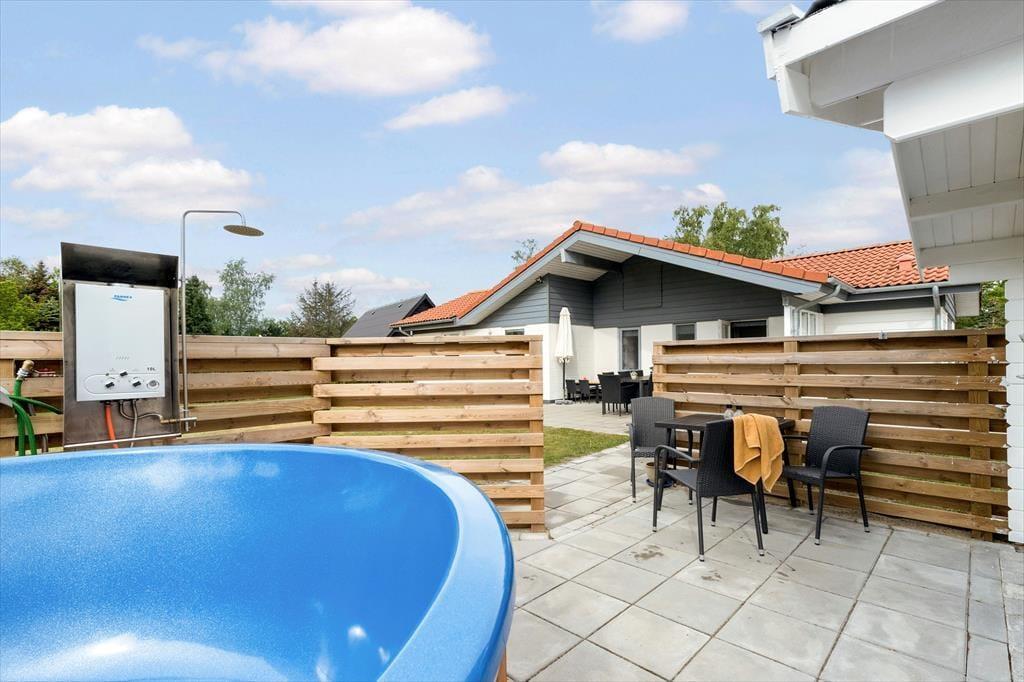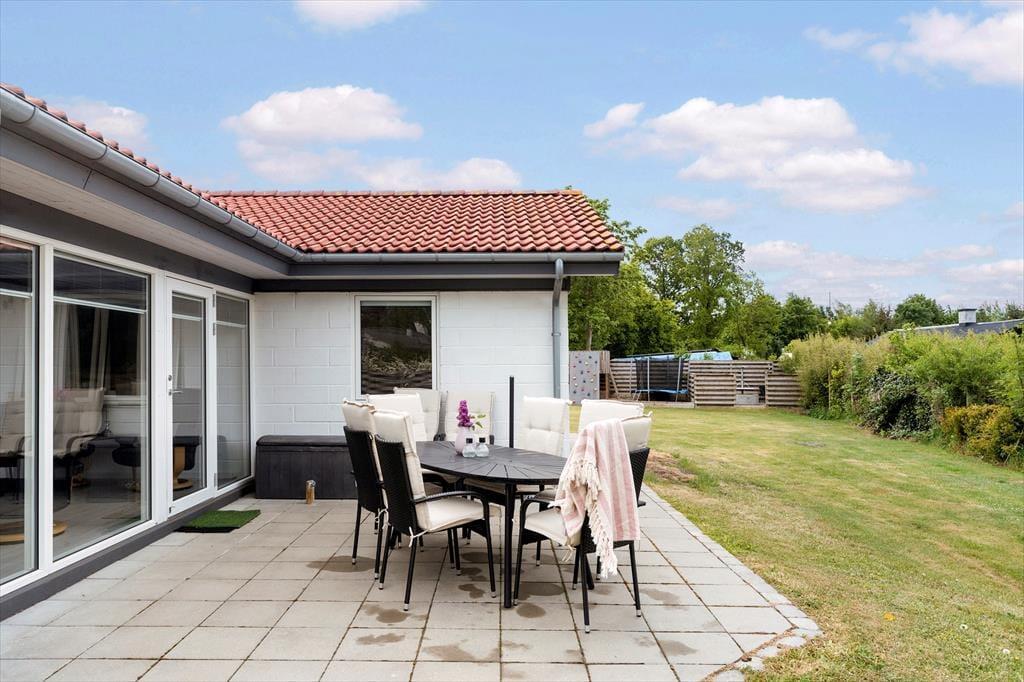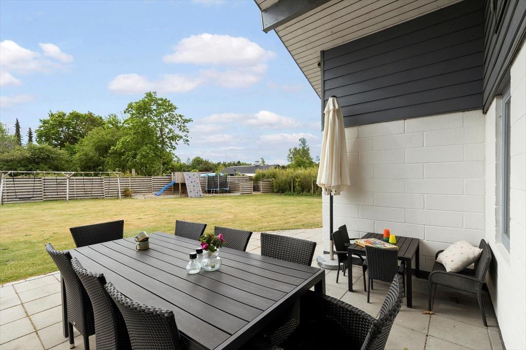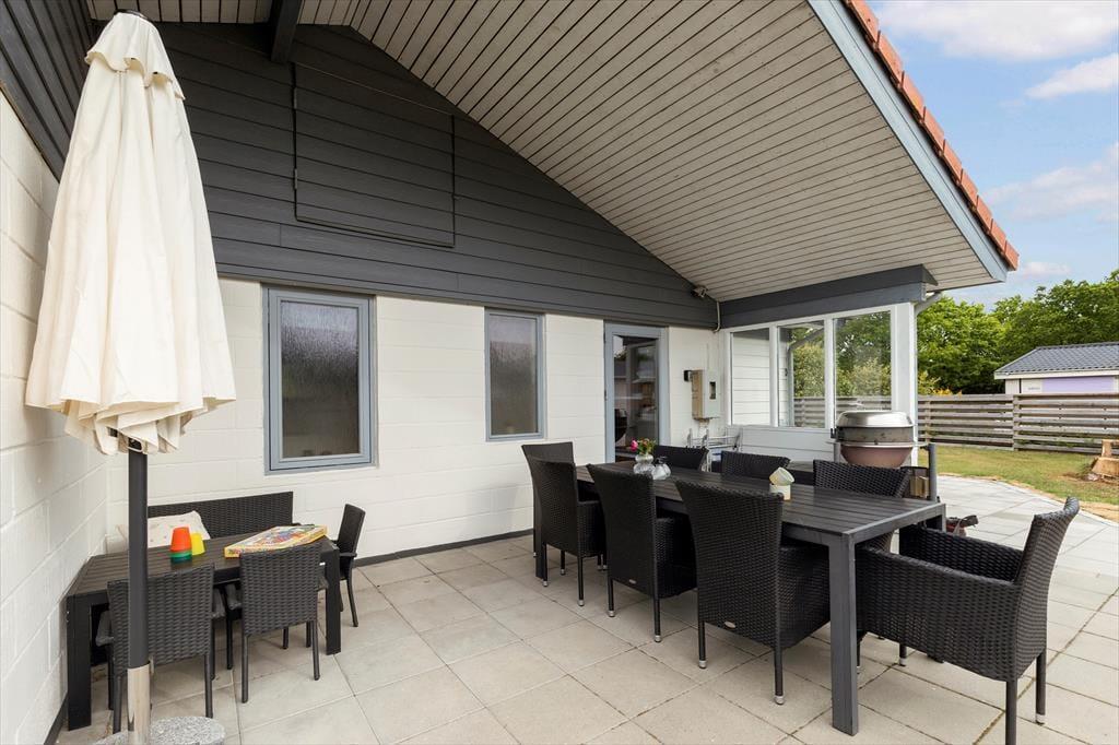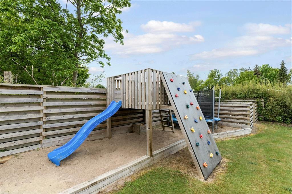 Sommerhuset ligger i et dejligt sommerhusområde på en indhegnet grund, kun 400 meter fra den skønne badestrand. Haven er stor og ideel til leg og boldspil, så børnene kan boltre sig, mens de voksne slapper af. Her er to terrasser - begge udstyret med havemøbler, liggestole og en grill – perfekte steder at nyde den friske luft og den smukke udsigt over landskabet. Uanset om I ønsker at tage en rolig stund i morgensolen eller nyde en grillmiddag i de lune aftentimer, er der masser af plads og anledning til at gøre ferien ekstra behagelig.