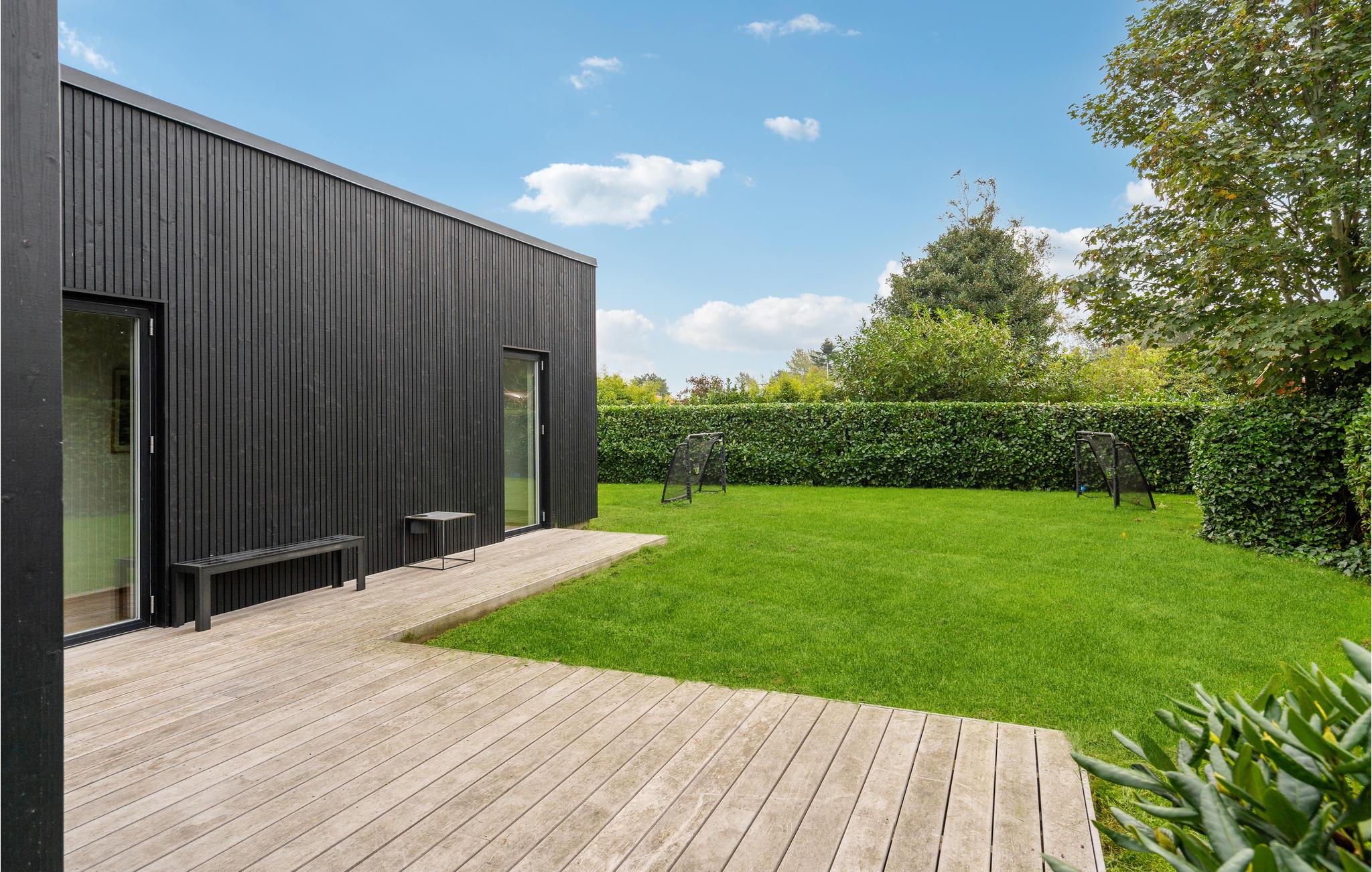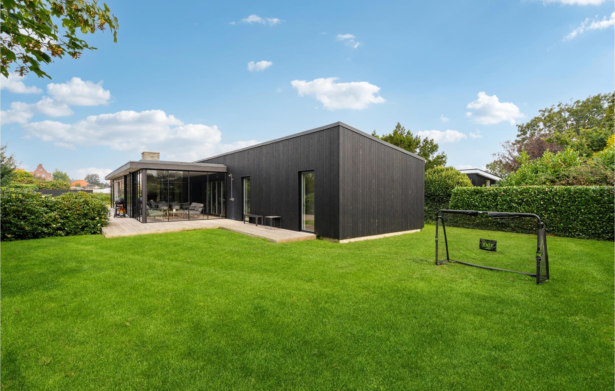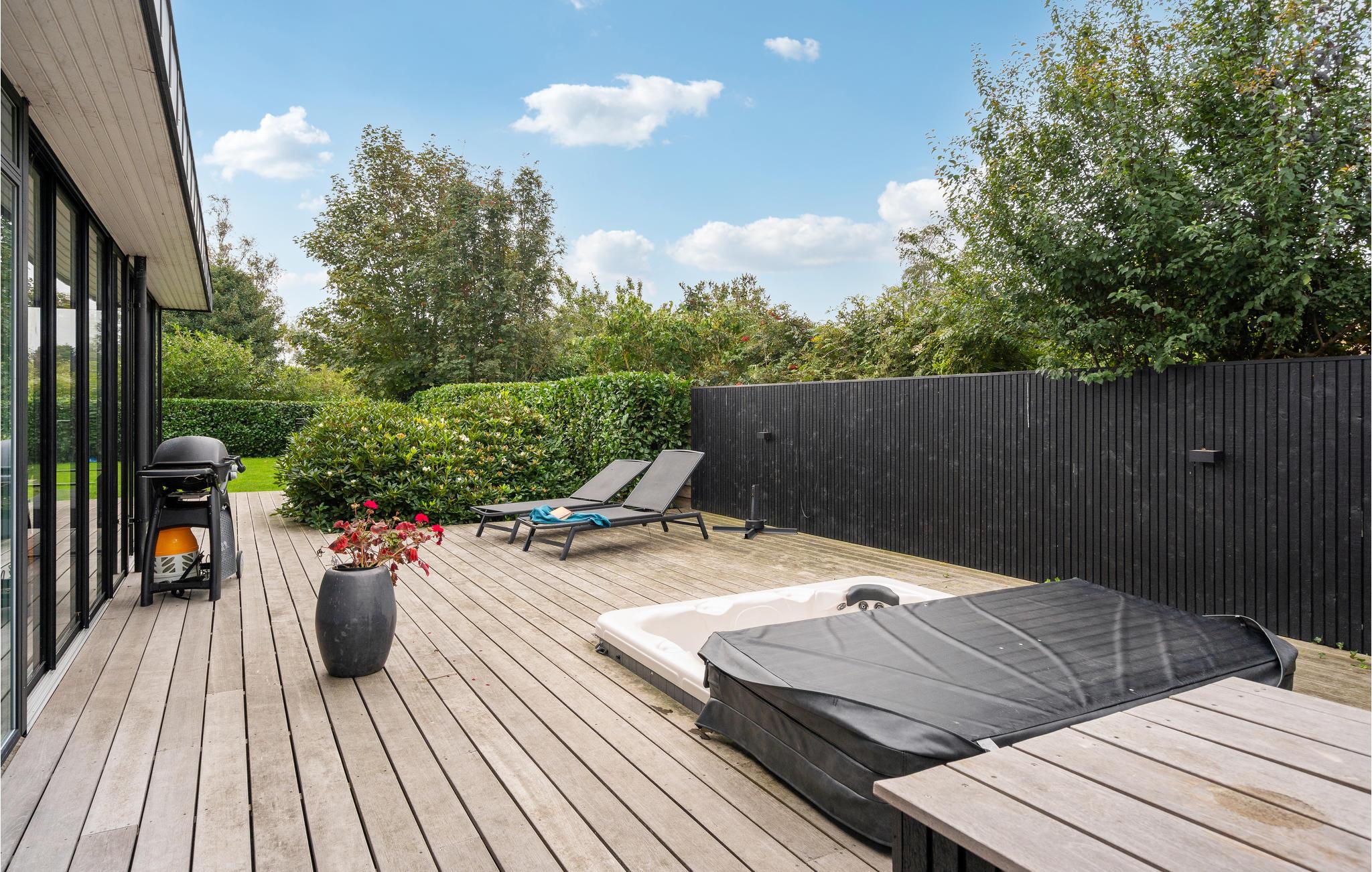 Moderne sommerhus nær Juelsmindes strand med stort spabad og aktivitetsrum.