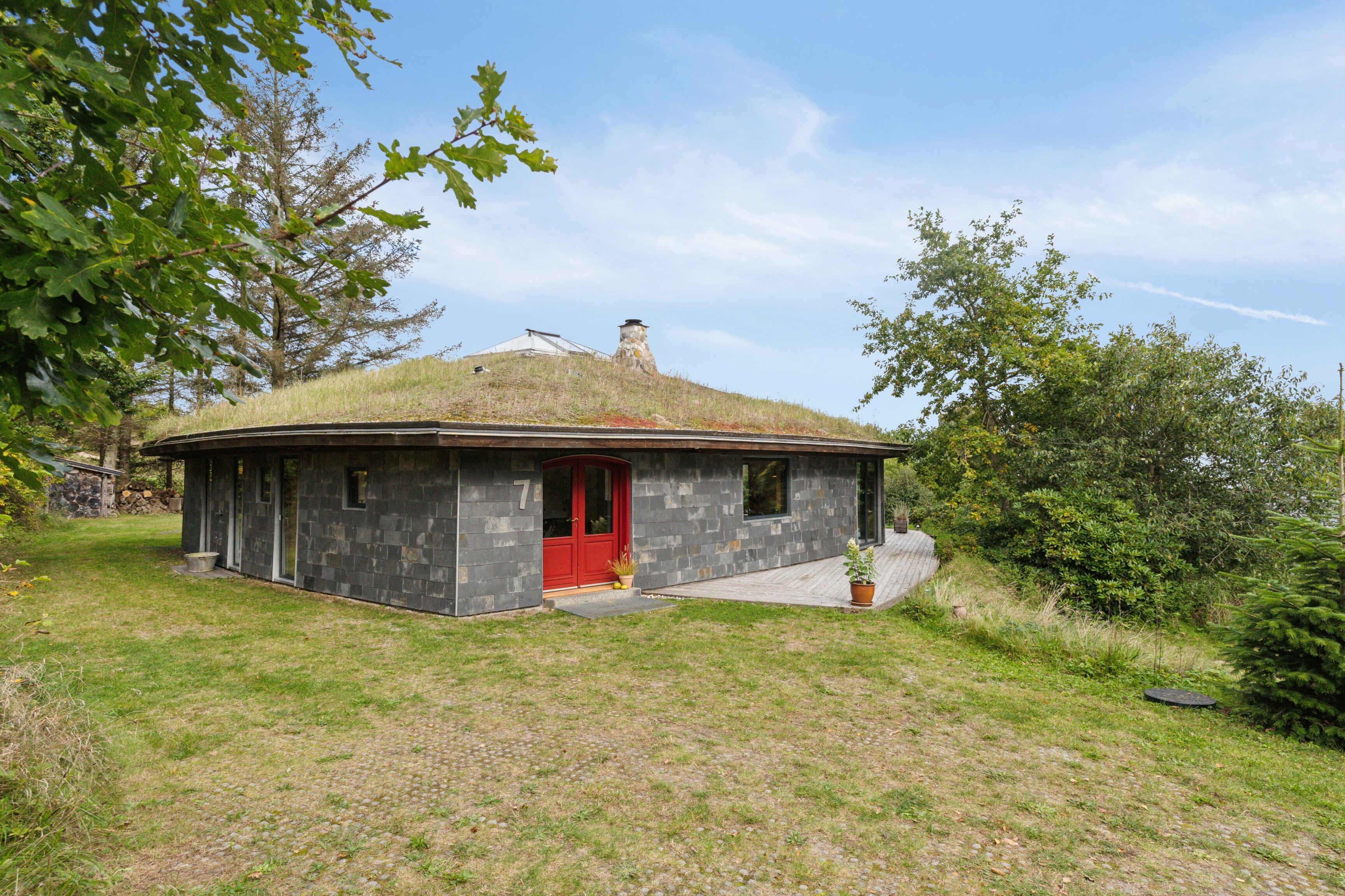 Smukt sommerhus i naturmaterialer på lige så smuk og uforstyrret naturgrund. Indvendigt præger husets rundtømmerkonstruktion de store, flotte og lyse rum. Huset er omgivet af en stor terrasse med panoramaudsigt over Kattegat og Muldbjerge.