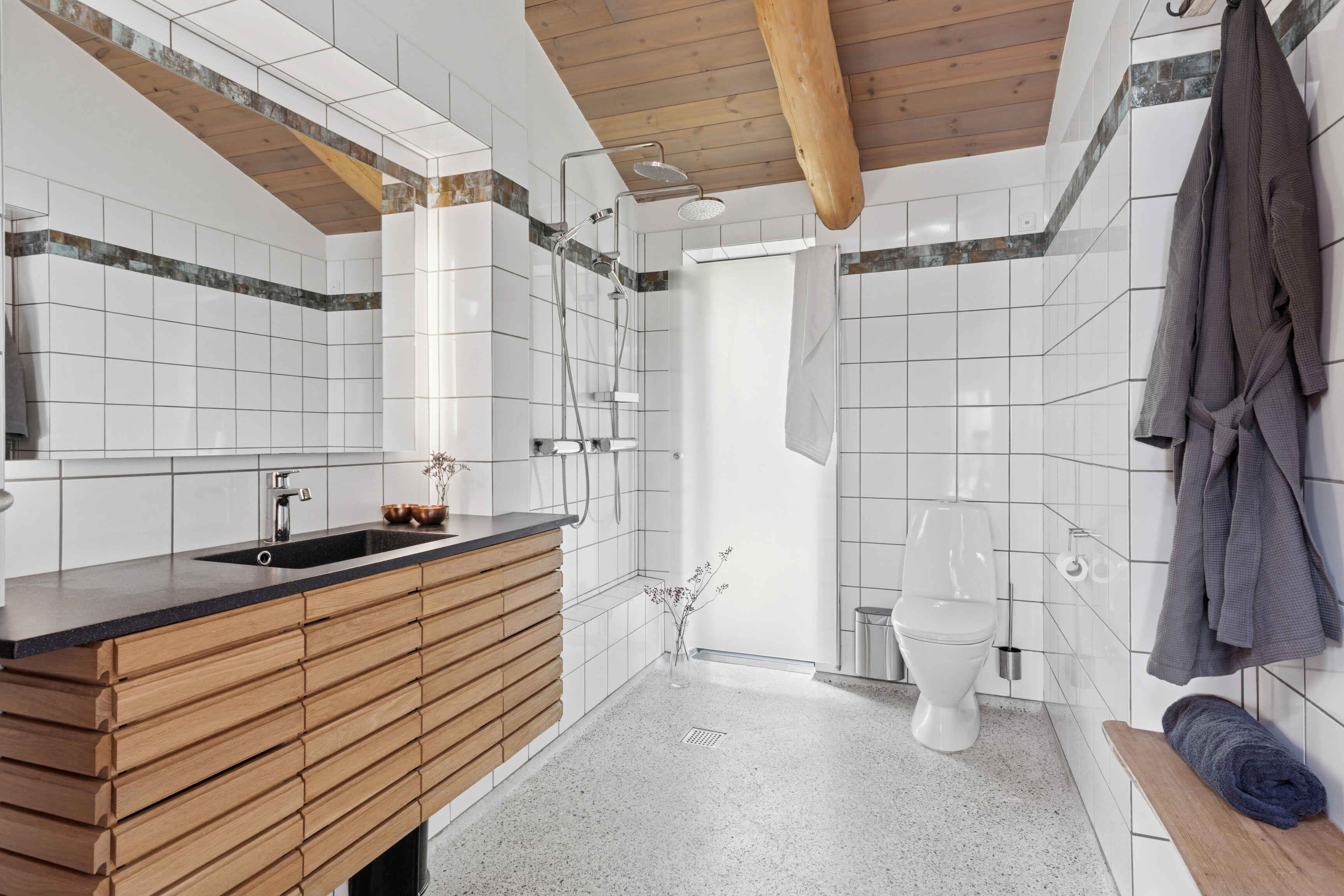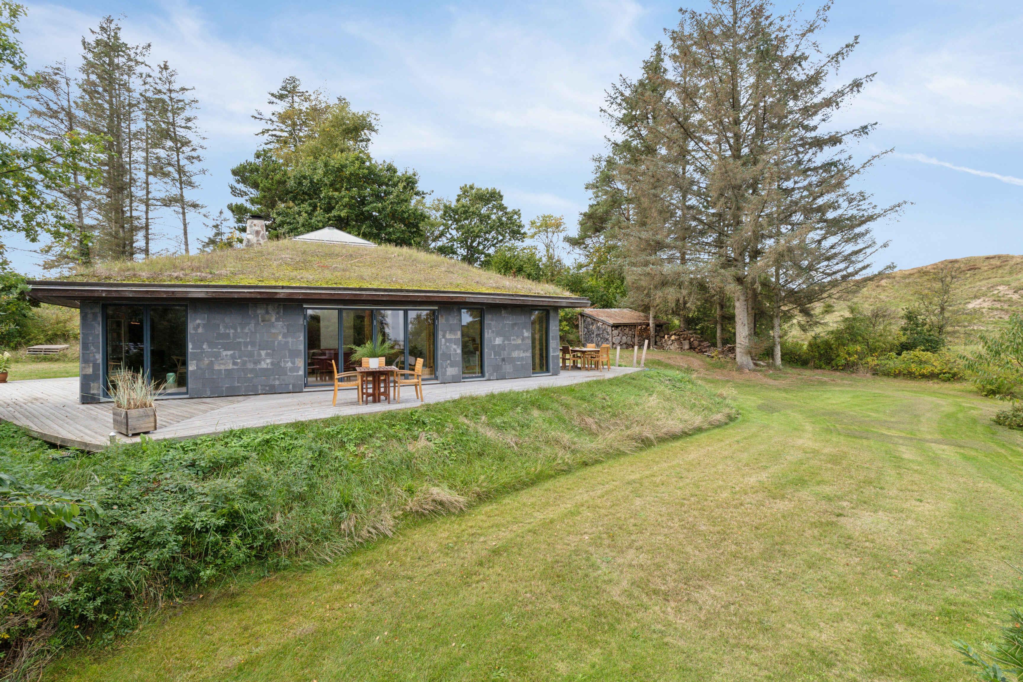 Smukt og stort sommerhus i naturmaterialer på lige så smuk og uforstyrret naturgrund. Facaden er beklædt med flot patineret naturskiffer. Taget er dækket med græs og sedum, så huset falder godt i et med de naturskønne omgivelser. Indvendigt præger husets rundtømmerkonstruktion de store, flotte og lyse rum. Huset er omgivet af en stor terrasse med panoramaudsigt over Kattegat og Muldbjerge. Fra skuret i hjørnet af haven kan man følge en lille stegl sti, til et skønt udsigtspunkt på toppen af grunden. Grunden har været ejet af familien i 30 år. Huset er nybygget af far og søn og blev færdigt i 2025. Huset ligger lige ved Muldbjerge og herfra er der mulighed for mange gode og smukke gåture. Nogle vover også at bruge Muldbjerge til at flyve i paraglider fra. Ved den lille mole ved Teglvej (200 m fra huset) er der gode muligheder for at søsætte både havkajakker, padelboard og windsurfer. 2 stk padelboard med håndpumpe, svømmevest og padel findes til fri afbenyttelse i skuret. I gåafstand fra sommerhuset findes molen ved Dokkedal, hvor der er gode muligheder for at bade og fiske krabber. Vi har altid selv brugt de store sandrevler ved molen til at bade fra og bygge sandslotte på. Sommerhuset ligger i cykelafstand (5 km) til Lille Vildmose. Dette er et stort og beskyttet vildmarksområde med et sprudlende og unikt dyreliv. Henholdsvis 10 km mod syd og nord ligger Øster Hurup og Hals. Begge byer har et rigt by- og havneliv i sommerhalvåret. Aalborg ligger 30 minutters kørsel væk og byder på mange kultur og shopping muligheder.