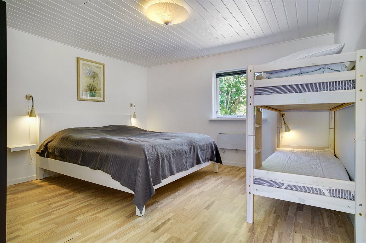 Der er i alt 2 soveværelser. Sovepladserne fordeler sig på: 2 sovepladser i dobbeltseng. 2 sovepladser i køjeseng.2 sovepladser i elevationssenge. 2 sovepladser i sovesofa (dobbelt).