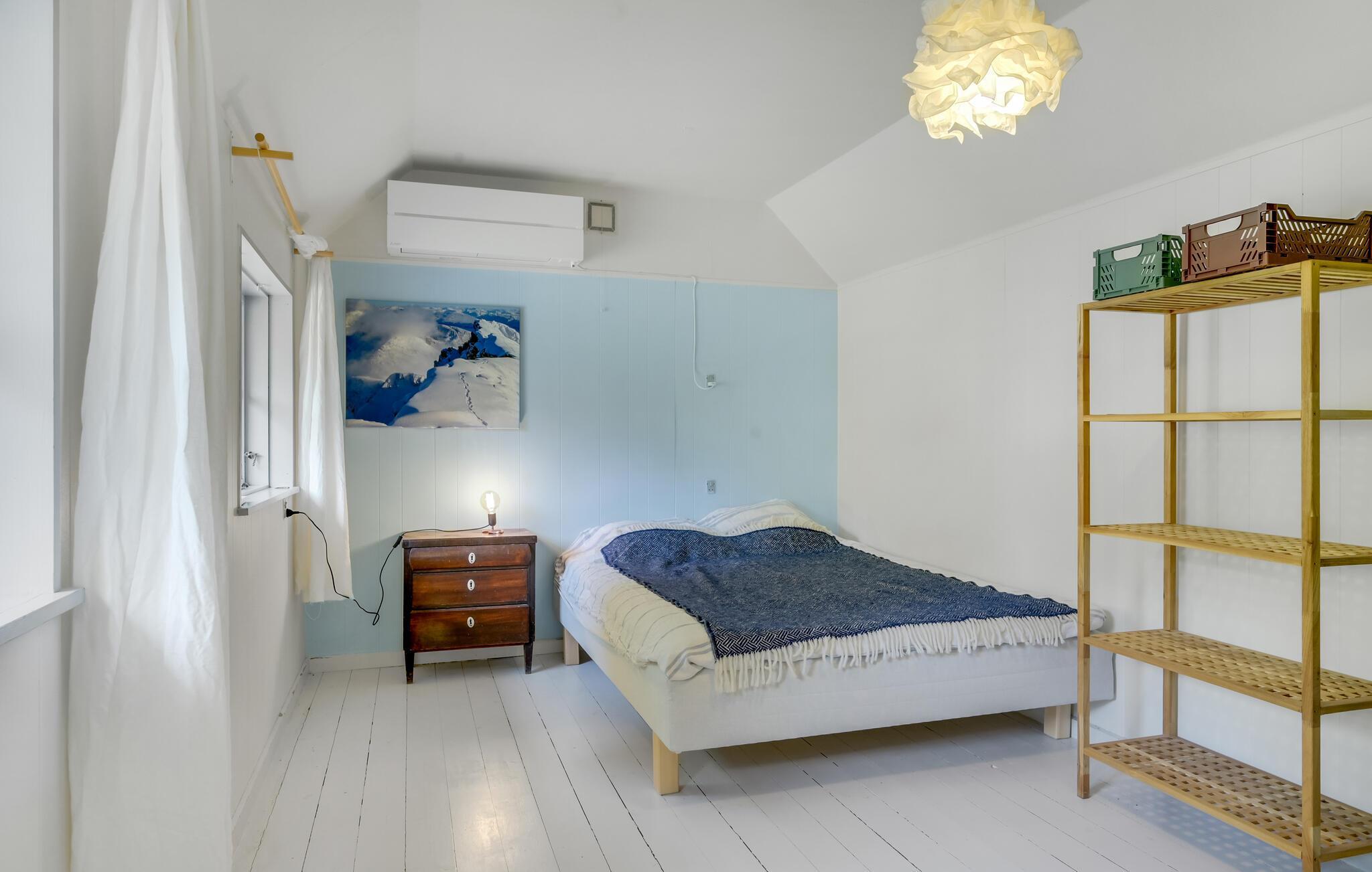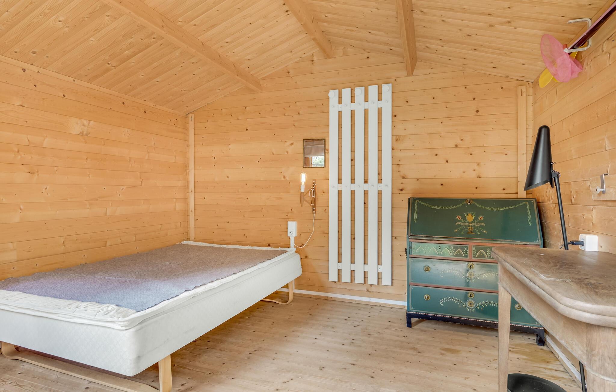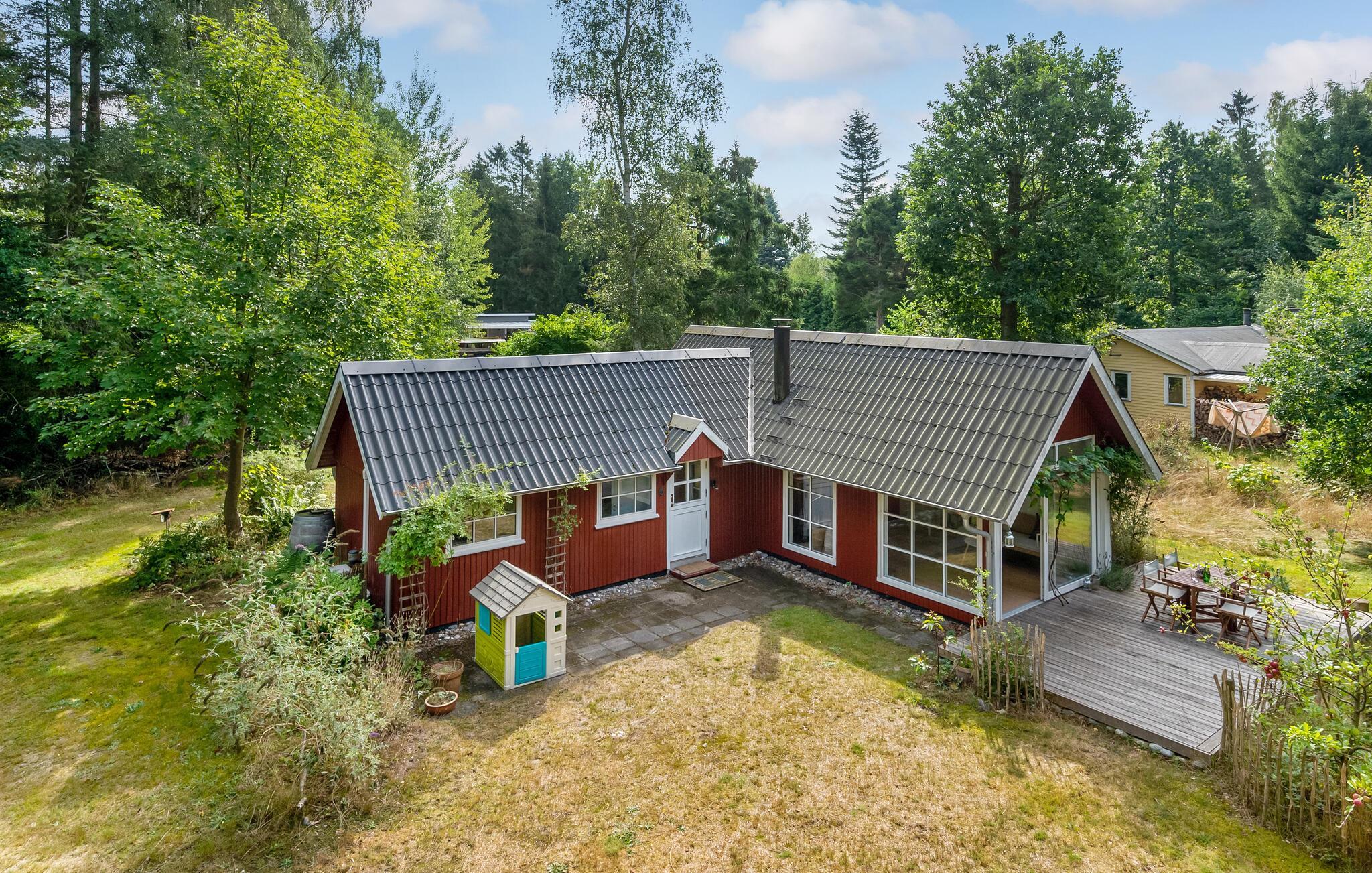 Træd ind i dette smukke feriehus og mærk roen sænke sig med det samme. Den lyse stue med brændeovn er husets hjerte, hvor I virkelig kan slappe af. I forlængelse ligger køkkenet, hvor I kan lave mad, spise og hygge jer. Ud over soveværelset i huset er der endnu et soveværelse i annekset i haven. Haven er en stor oase af velvære. Nyd jeres lækre feriemåltider på terrassen, mens I beundrer den omkringliggende natur, træerne, buskene og blomsterne.
