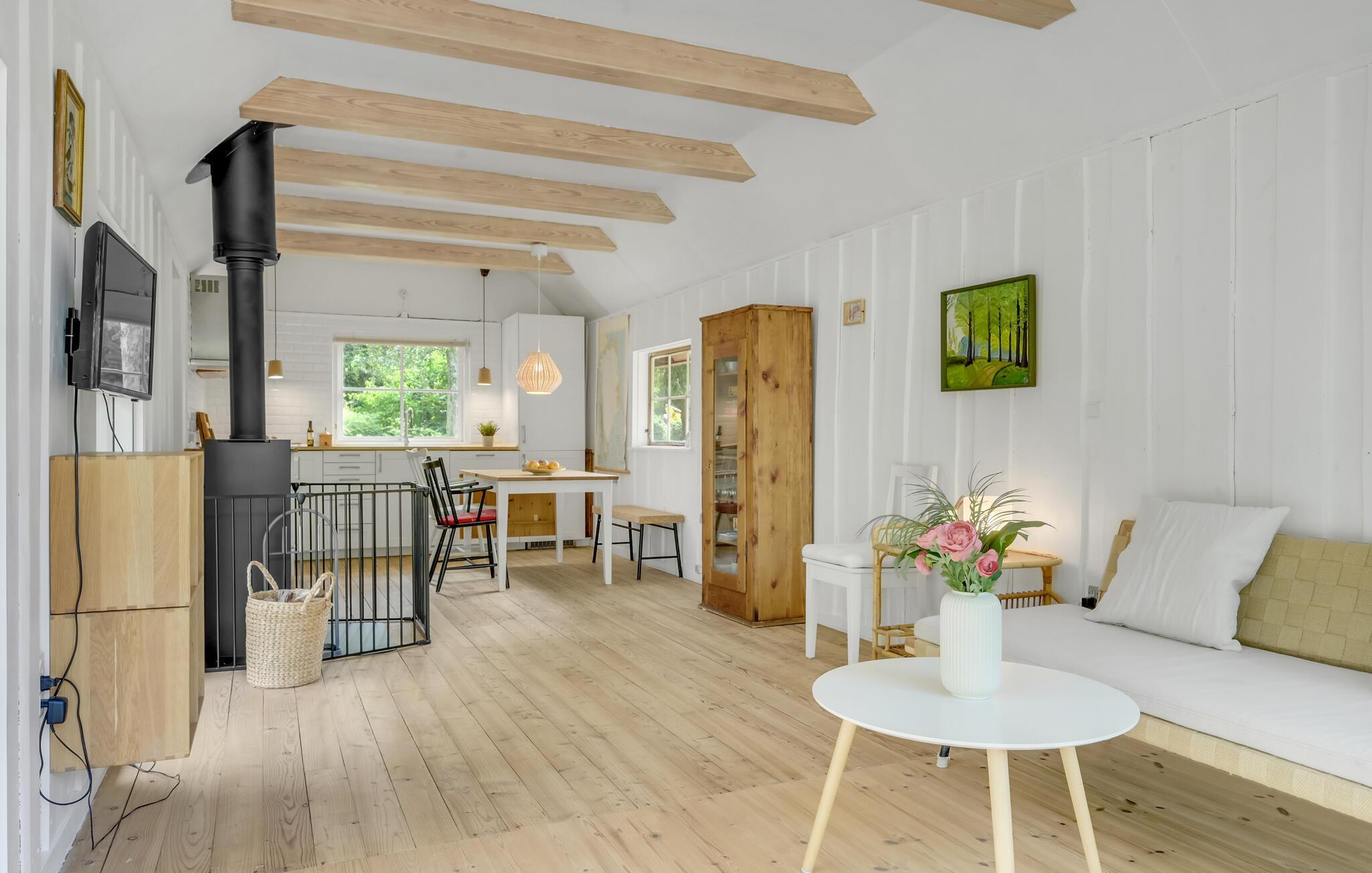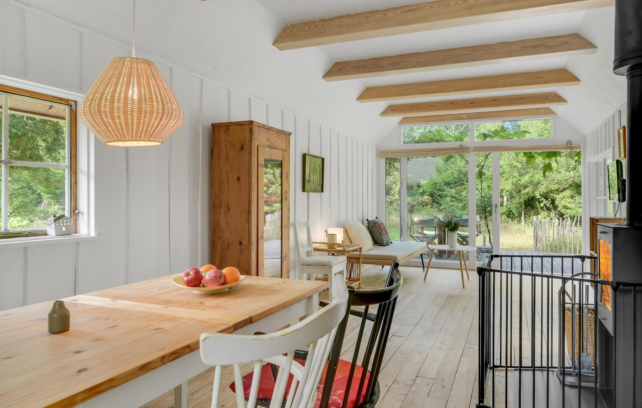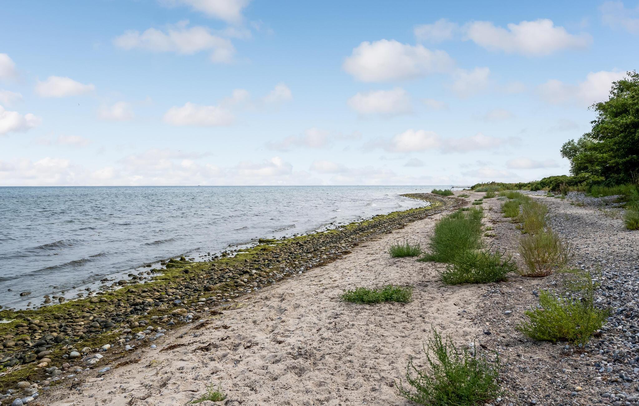 Nyd ferien i dette hyggelige og lyse sommerhus tæt på den stenede sandstrand.