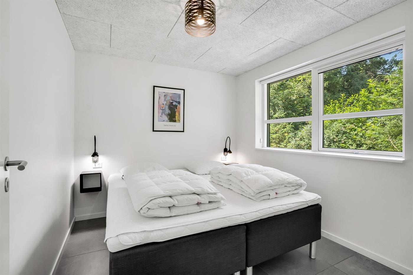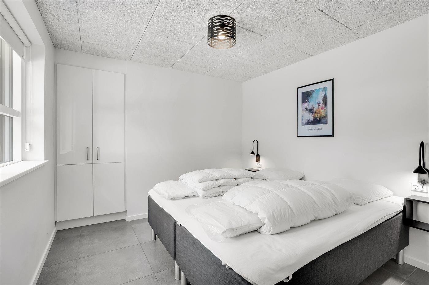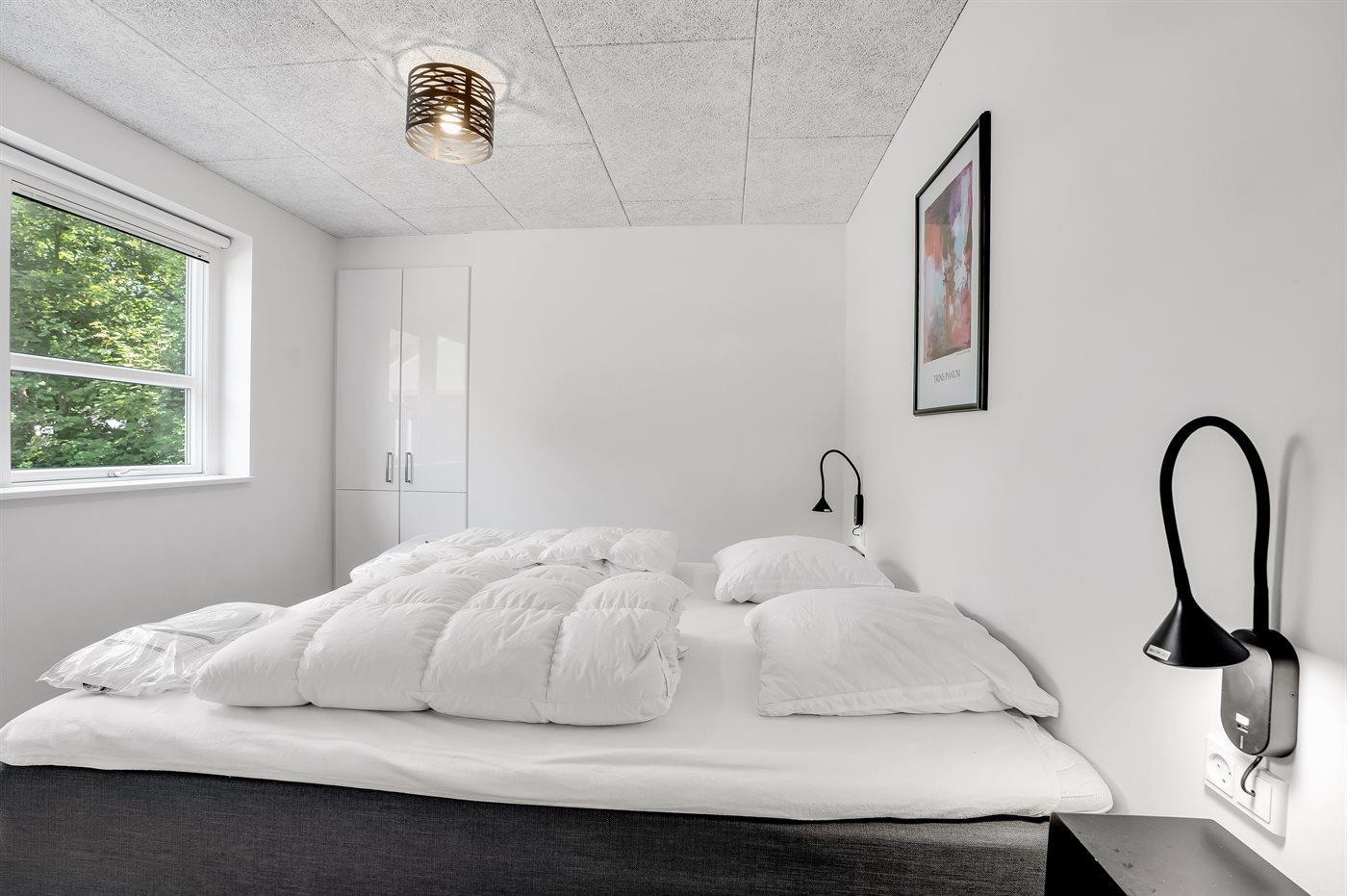 Der er i alt 5 soveværelser. Sovepladserne fordeler sig på: 8 sovepladser i dobbeltsenge. 2 sovepladser i enkeltsenge. 4 sovepladser på madrasser. 4 af disse sovepladser befinder sig på husets hems. Derudover er der 1 stk. barneseng.