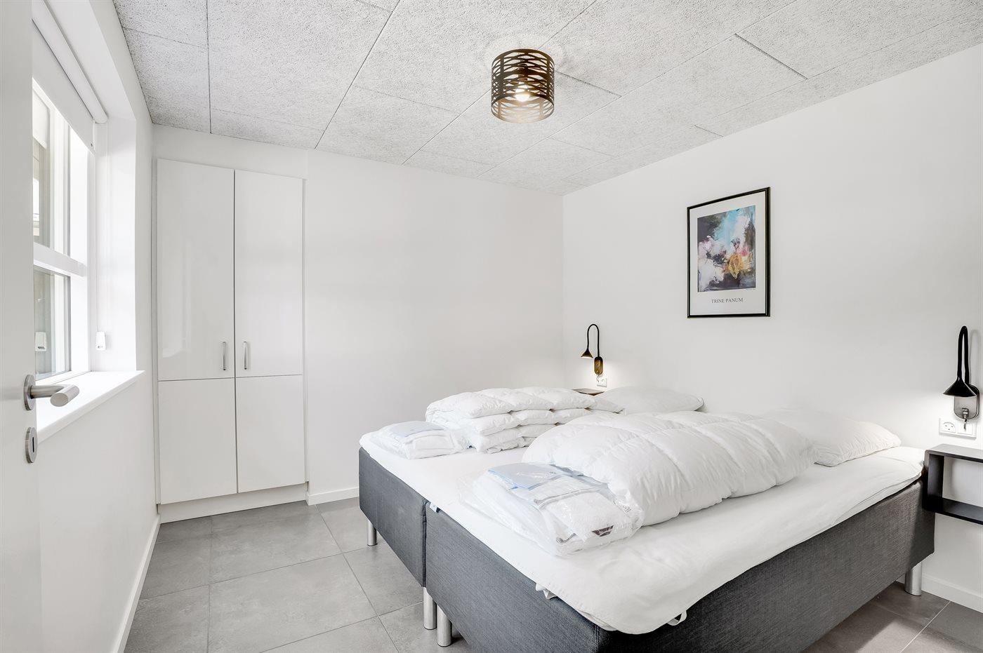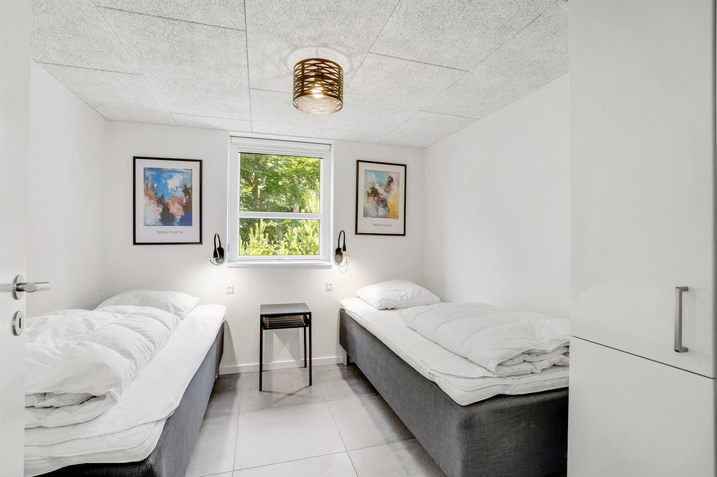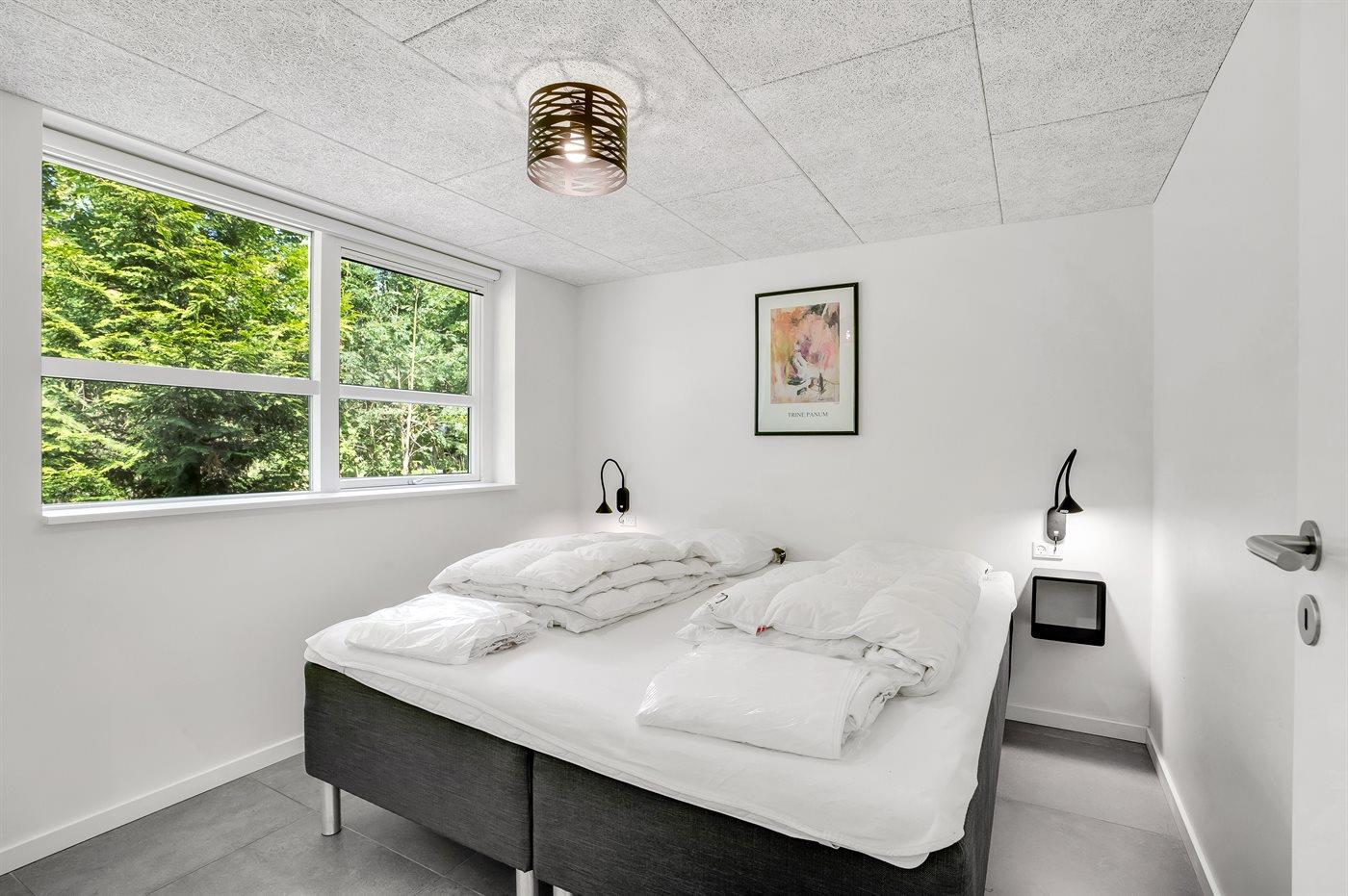 Der er i alt 5 soveværelser. Sovepladserne fordeler sig på: 8 sovepladser i dobbeltsenge. 2 sovepladser i enkeltsenge. 4 sovepladser på madrasser. 4 af disse sovepladser befinder sig på husets hems. Derudover er der 1 stk. barneseng.