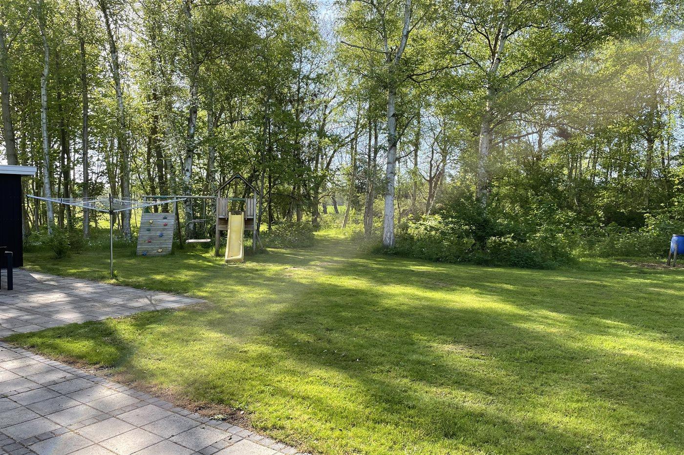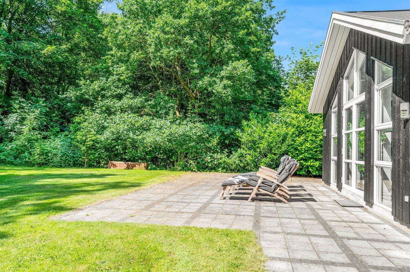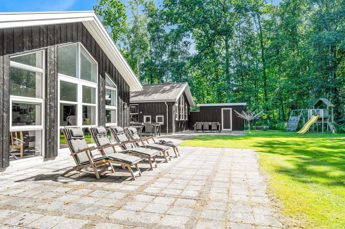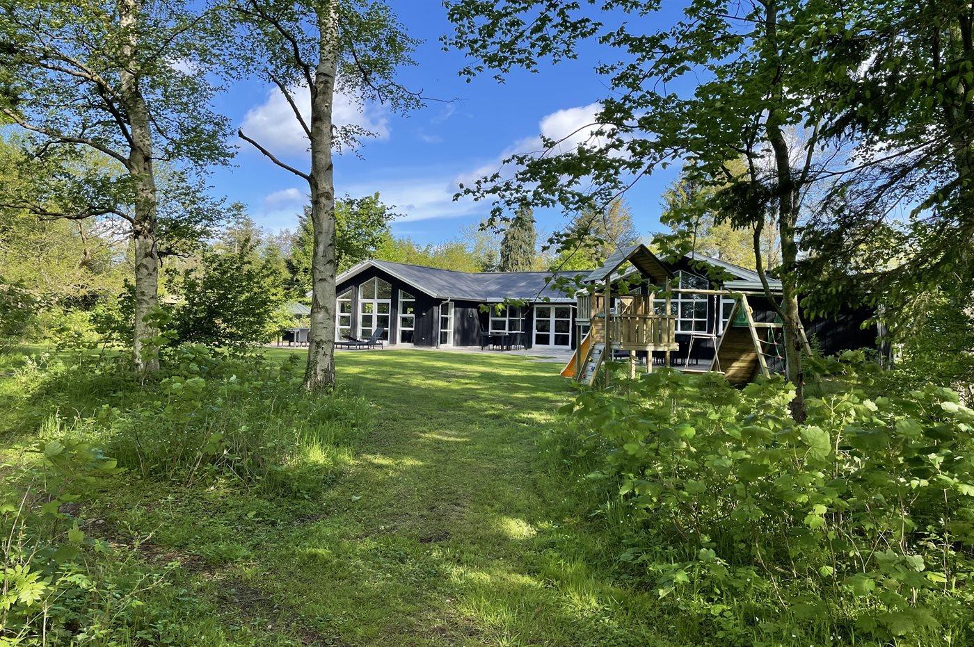 Til børnene er der indrettet naturlegeplads foran den store terrasse med til grill og hygge. I kan også være heldige og møde råvildt i haven, da grunden grænser op til skoven.