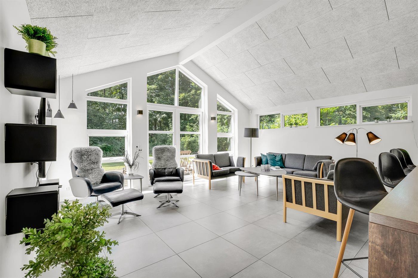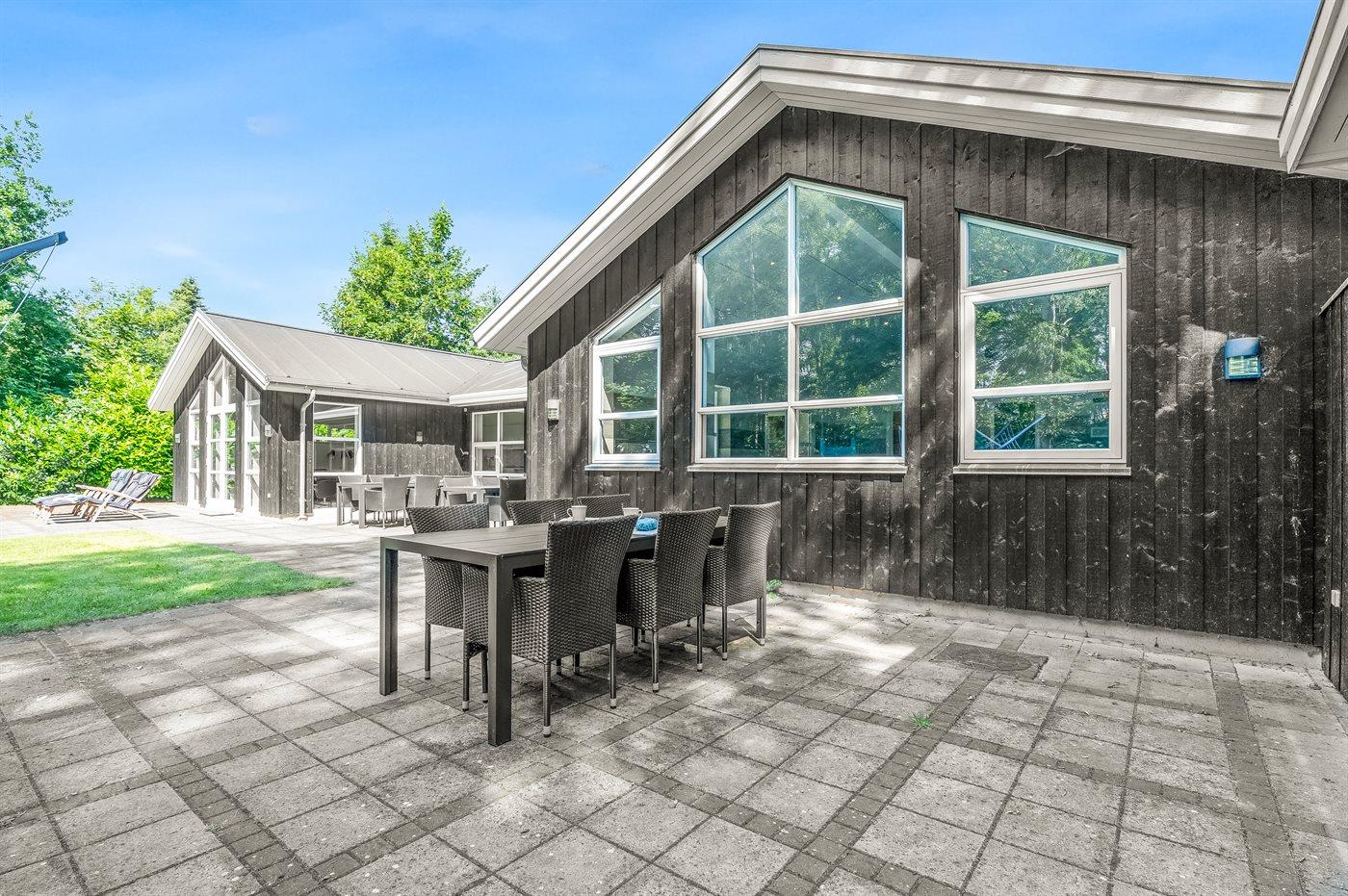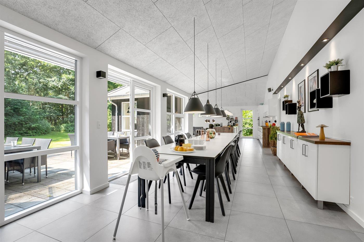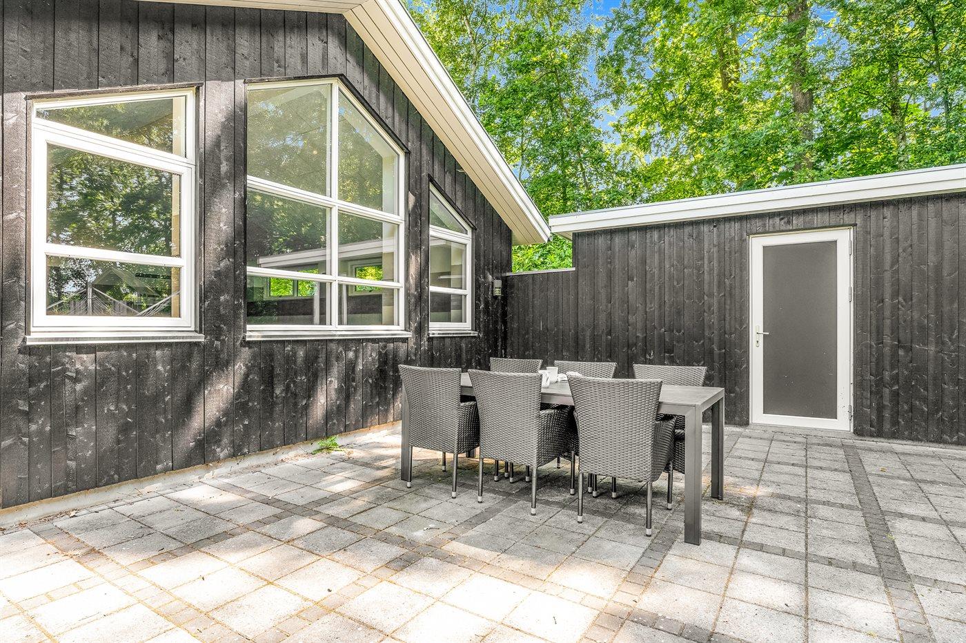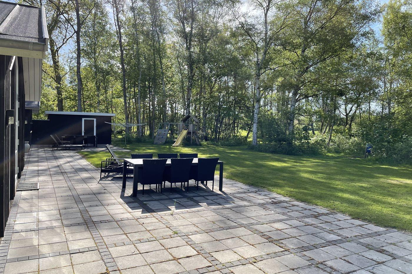 Til børnene er der indrettet naturlegeplads foran den store terrasse med til grill og hygge. I kan også være heldige og møde råvildt i haven, da grunden grænser op til skoven.