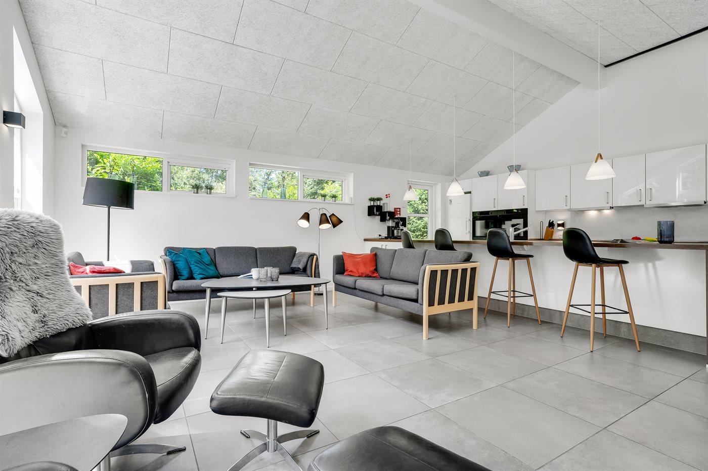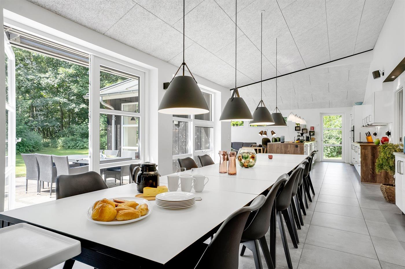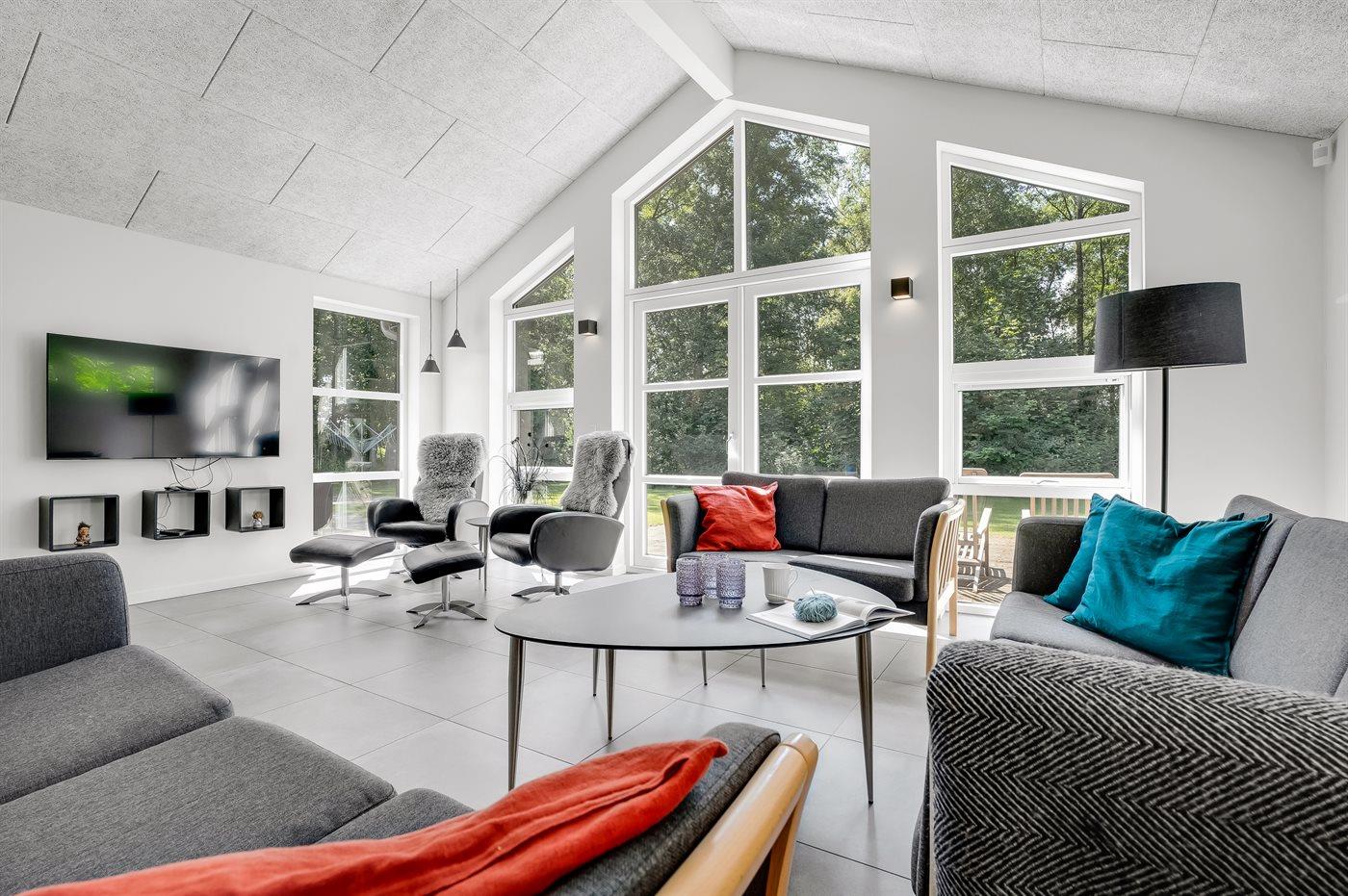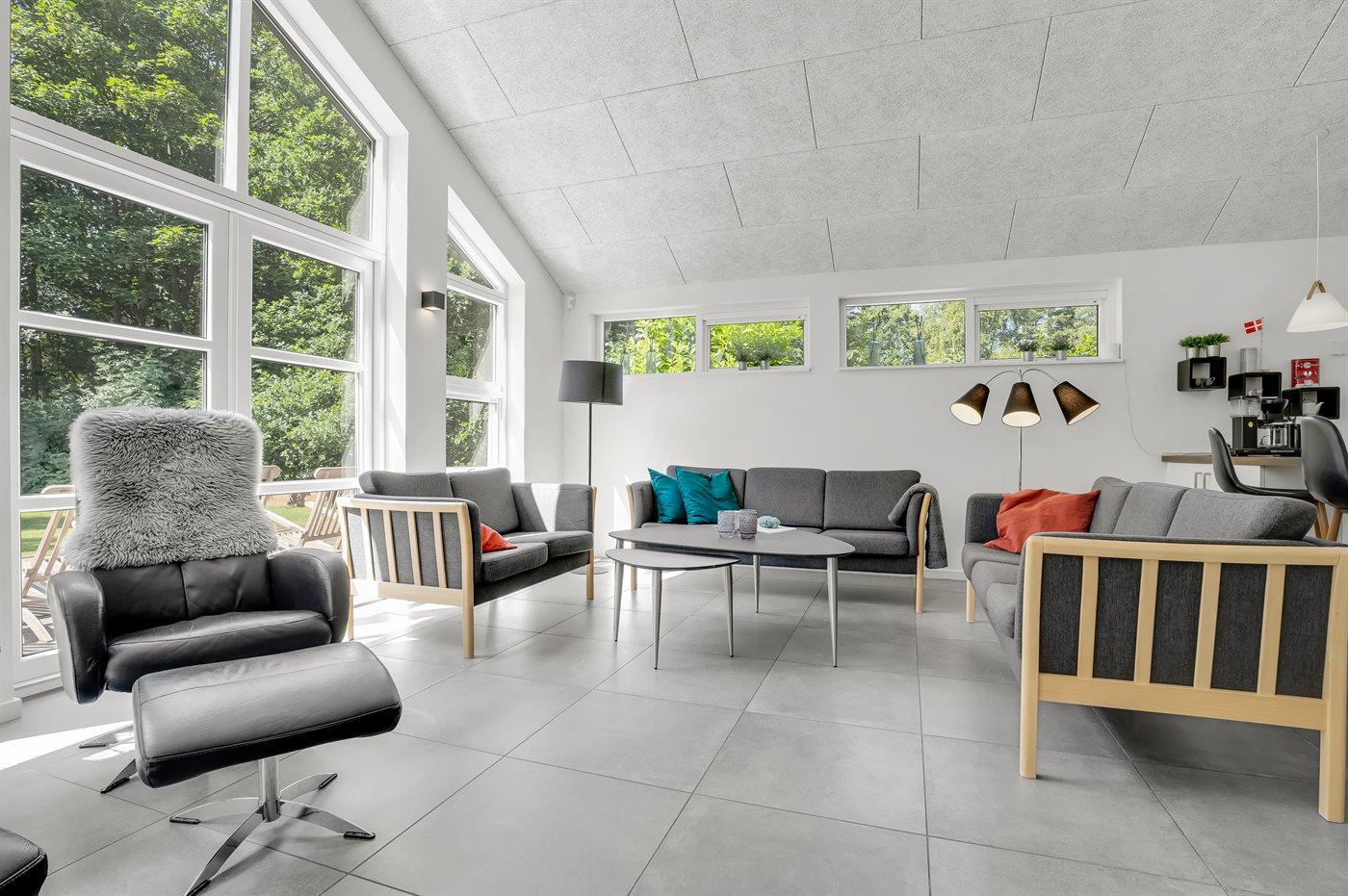 Til børnene er der indrettet naturlegeplads foran den store terrasse med til grill og hygge. I kan også være heldige og møde råvildt i haven, da grunden grænser op til skoven.