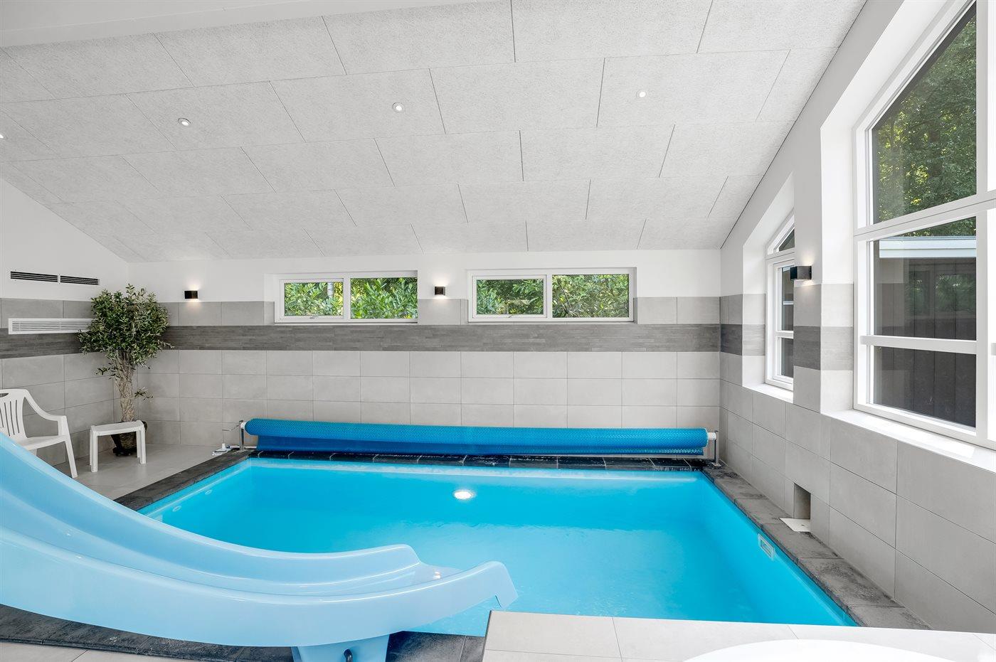 I den indendørs swimmingpool er der mulighed for leg og hyggeligt samvær. Swimmingpoolen måler op til 3 m i bredden, 5 m i længden og den er op til 1,4 m dyb. Vandet er mellem 24 og 28° C varmt. Swimmingpoolen har modstrømsanlæg. Der findes en vandrutsjebane. Der er gulvvarme i swimmingpoolområdet.