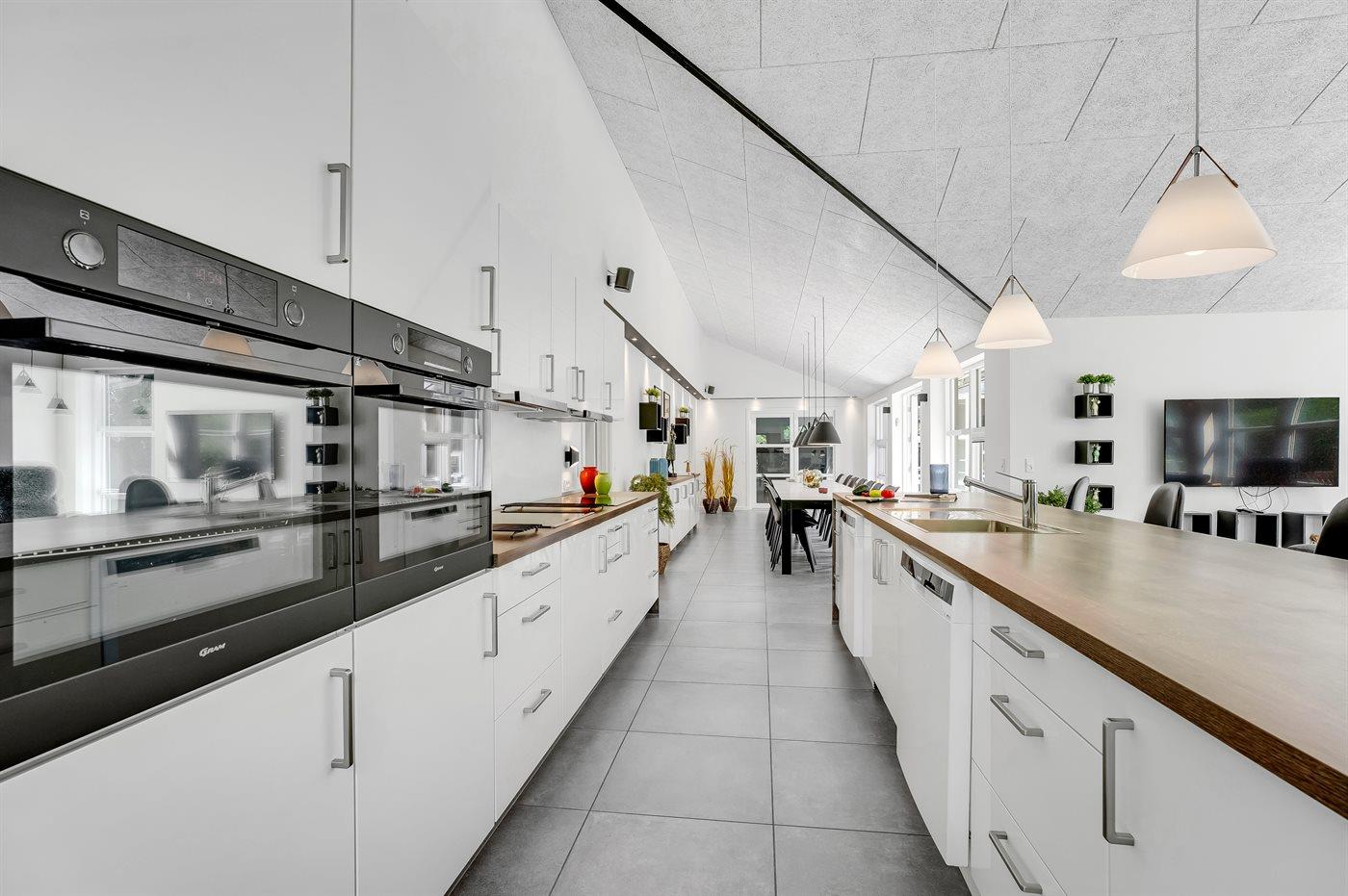 Køkkenet er udstyret med 1 køleskab. Der er 8 keramiske kogeplader, 2 varmluftovne, mikrobølgeovn samt 2 opvaskemaskiner.