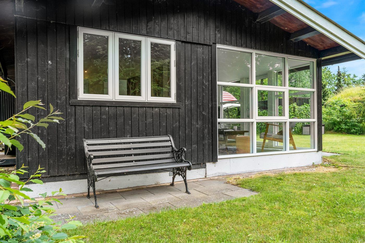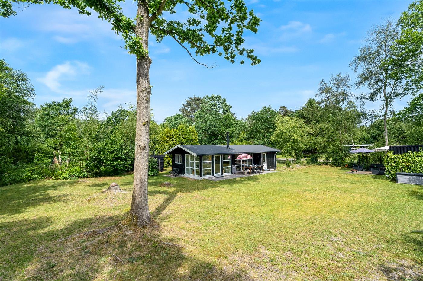 Ferieboligen er beliggende på en 1100 m² stor naturgrund. Der er 175 m til havet. Nærmeste forretning er beliggende i en afstand af 3000 m. Til ferieboligen hører åbent terrasseareal. Desuden er der overdækket terrasse. Fodboldmål. Bålsted. Udendørs bruser. Grill til rådighed. Der er installeret stik til opladning af elbil. Type 2 stik. Parkering ved ferieboligen.