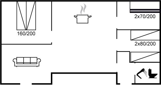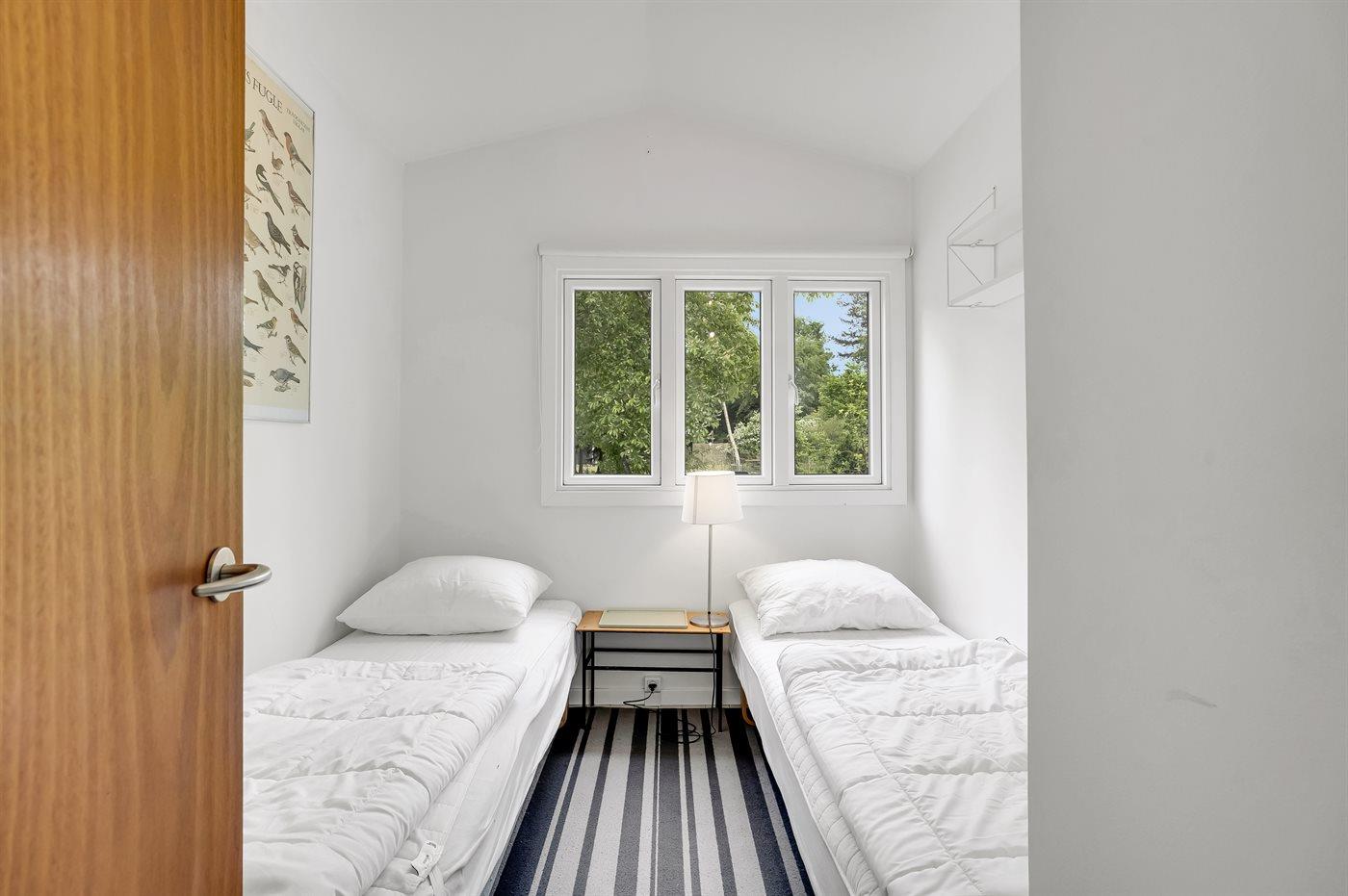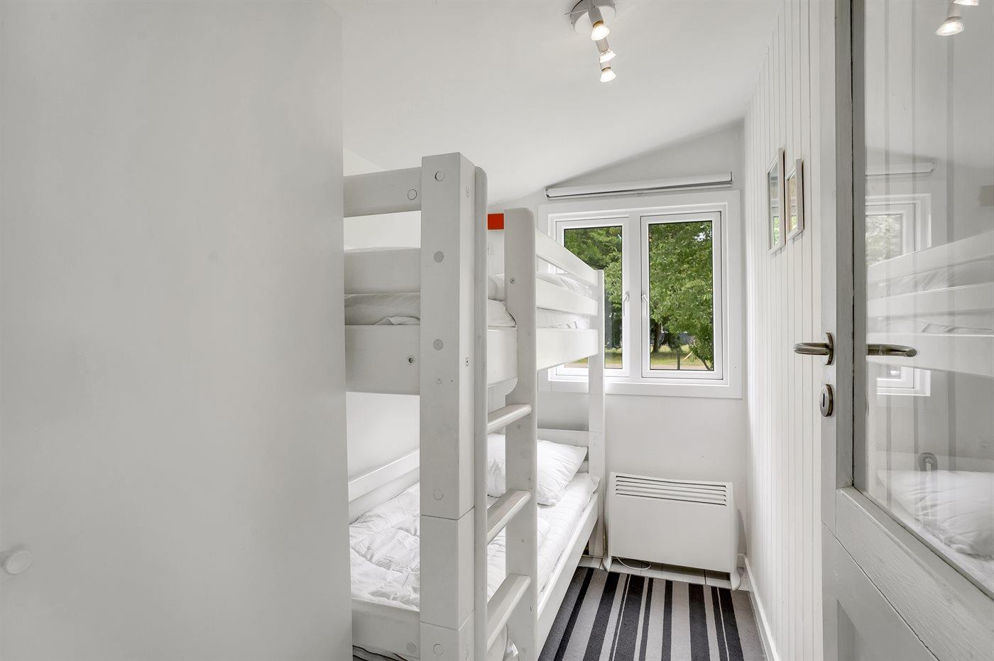 Der er i alt 3 soveværelser. Sovepladserne fordeler sig på: 2 sovepladser i dobbeltseng. 2 sovepladser i enkeltsenge. 2 sovepladser i køjeseng.