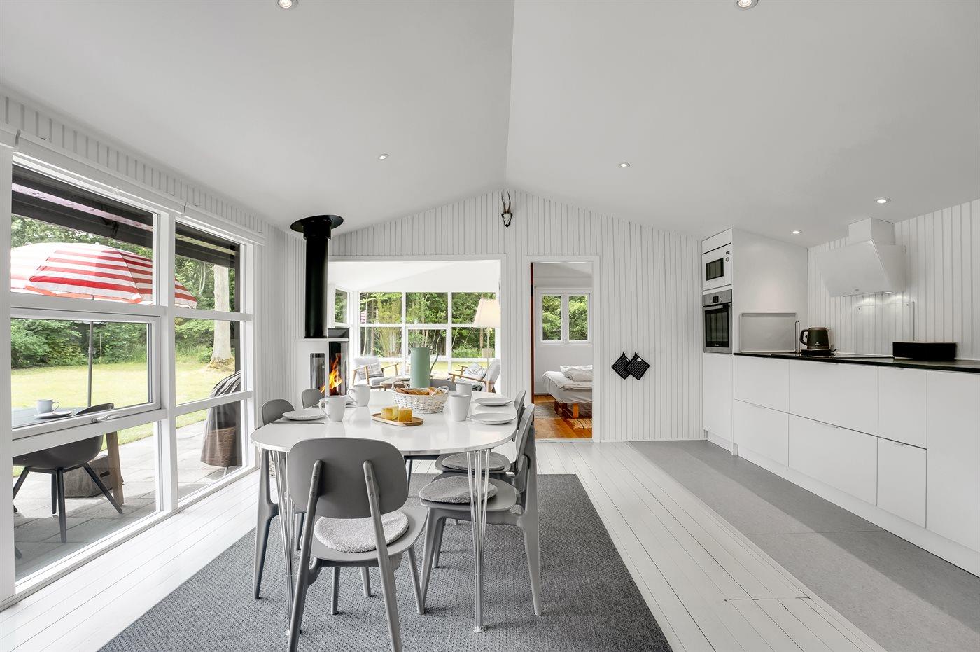 Sommerhuset er lyst og venligt, og man føler sig godt tilpas i huset. Det er renoveret i 2019 og er med luft/luft varmepumpe og en skøn brændeovn.