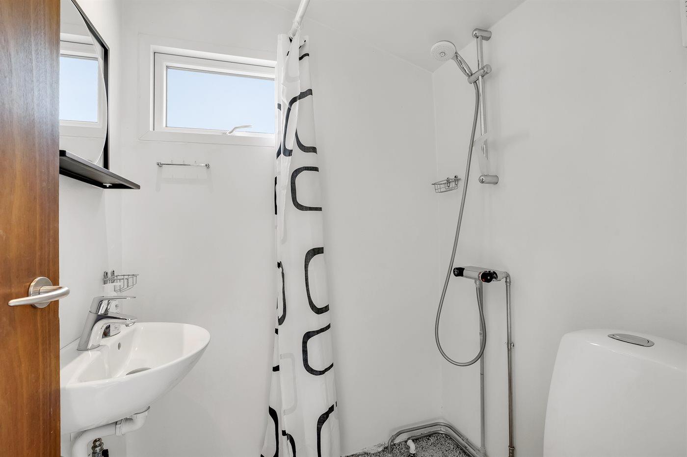 Der er 1 badeværelse med bruser og 1 toilet.