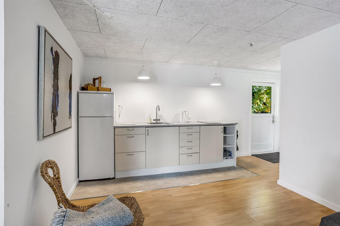 Køkkenet er udstyret med køleskab, miniovn, varmluftovn, mikrobølgeovn, Airfryer samt opvaskemaskine. Der findes ekstra køleskab i annekset.