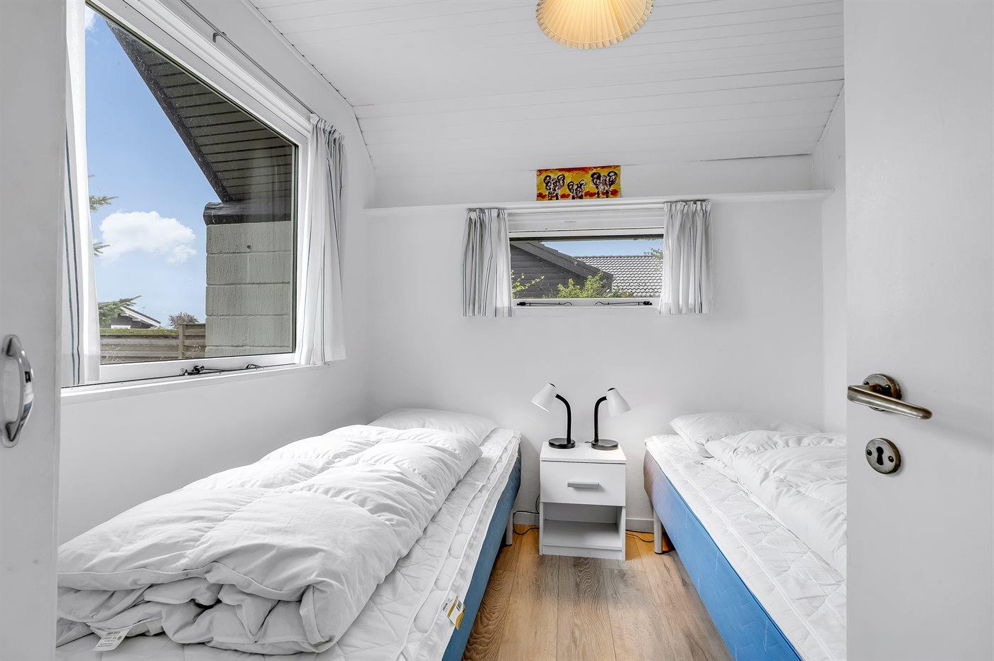 Der er i alt 2 soveværelser. Sovepladserne fordeler sig på: 4 sovepladser i enkeltsenge.