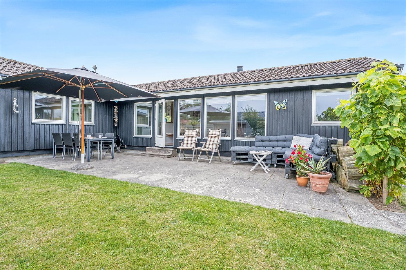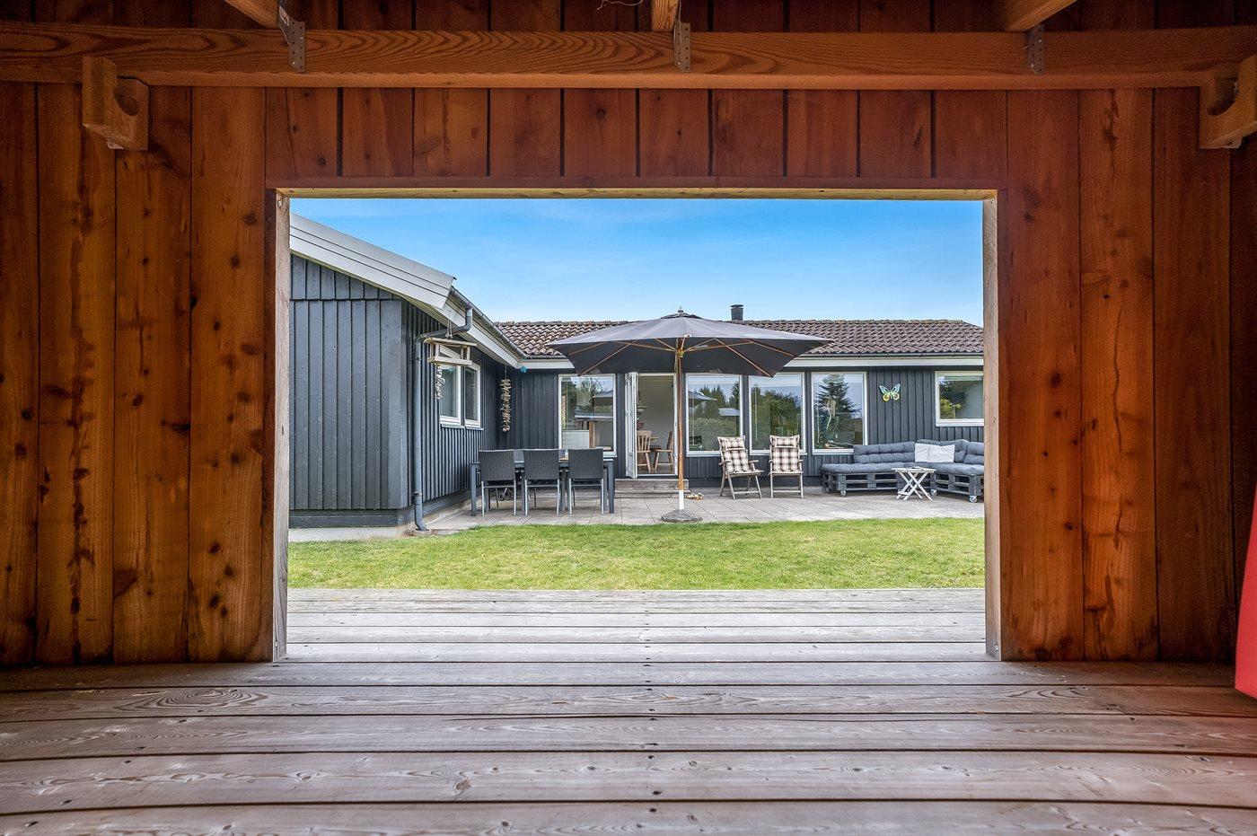 Ferieboligen er beliggende på en 800 m² stor naturgrund. Der er 150 m til havet. Nærmeste forretning er beliggende i en afstand af 4000 m. Til ferieboligen hører åbent terrasseareal. Gynge. Shelter. Grill til rådighed. Parkering ved ferieboligen.