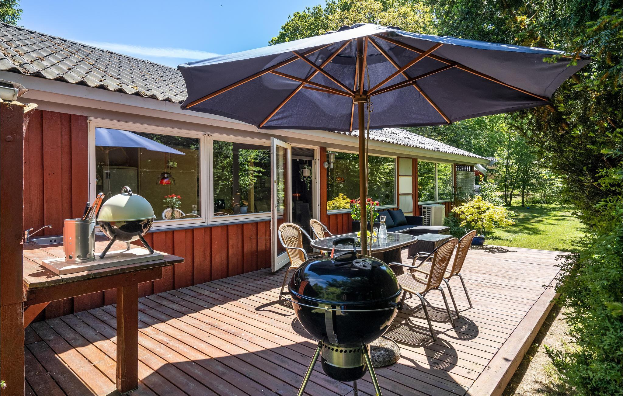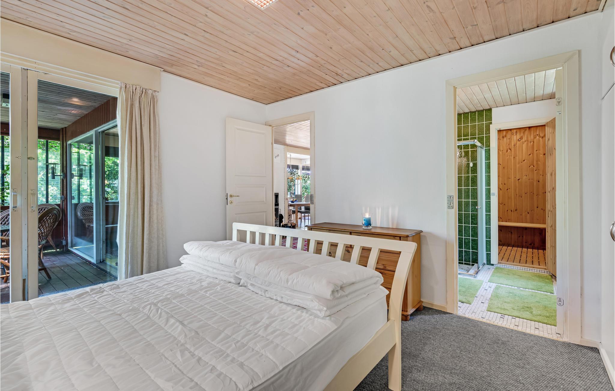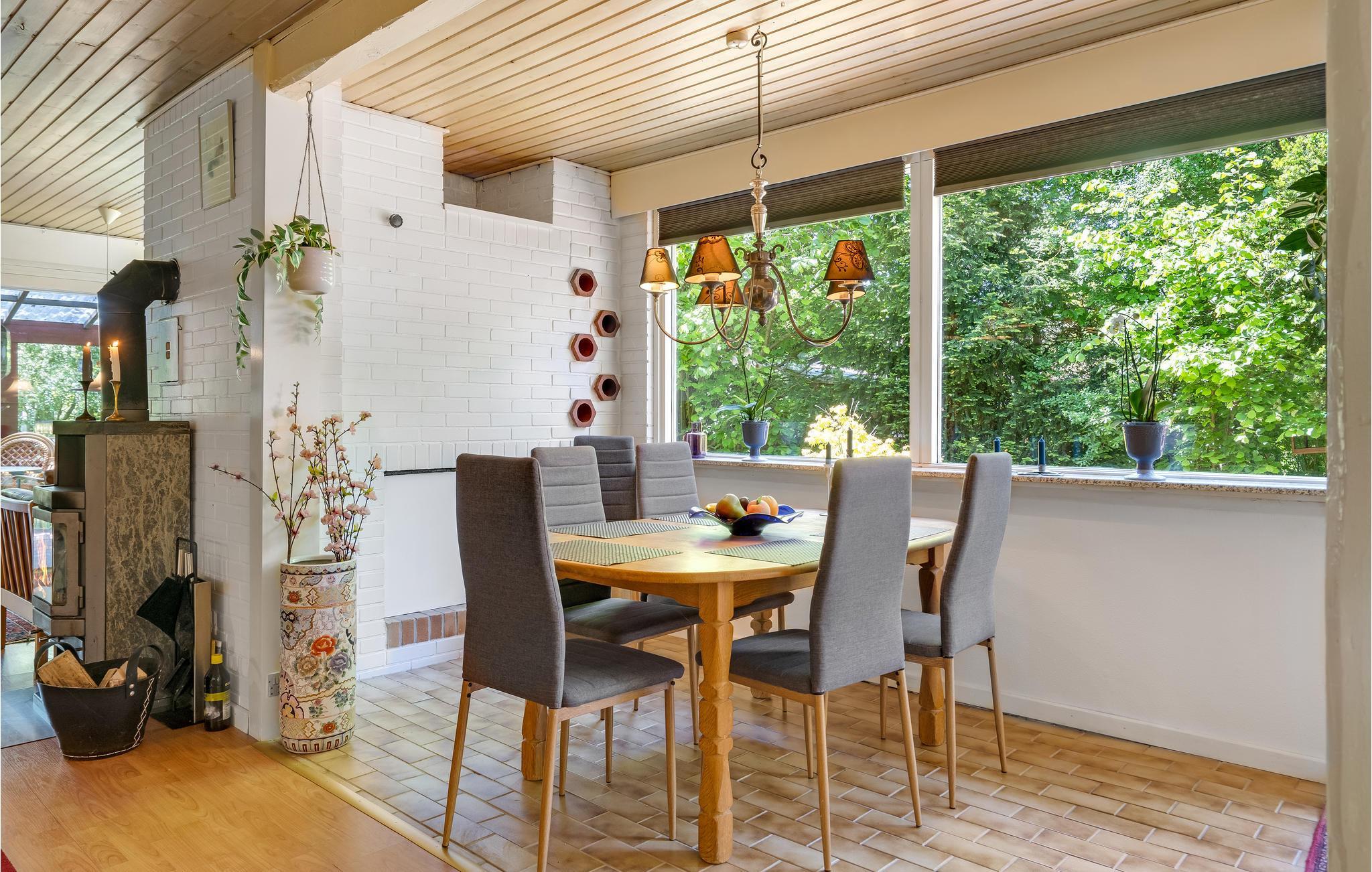 Huset byder jer velkommen på en smuk beliggenhed midt i skovområdet, Fredskoven. De hyggelige, lyse rum med en varm atmosfære lover familiehygge, ro og afkobling. Nyd måltiderne med en smuk udsigt over haven, hvor søde rådyr, egern og fasaner jævnligt kommer på besøg. Sæt jer godt til rette med en film eller et spil og nyd ferieaftenerne, mens de knitrende flammer i brændeovnen spreder varme på kølige dage. Efter en tur på stranden er der ikke noget bedre end wellness i husets sauna. Rundt om huset er der flere dejlige steder at nyde solen. Grunden, der er omgivet af træer, giver masser af plads til sjovt samvær, og en aften med grillbøffer og bearnaisesauce er en fornøjelse for hele familien. Gå en tur til stranden og nyd det friske hav.