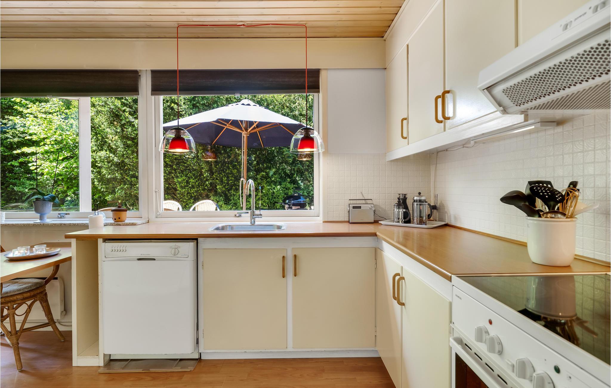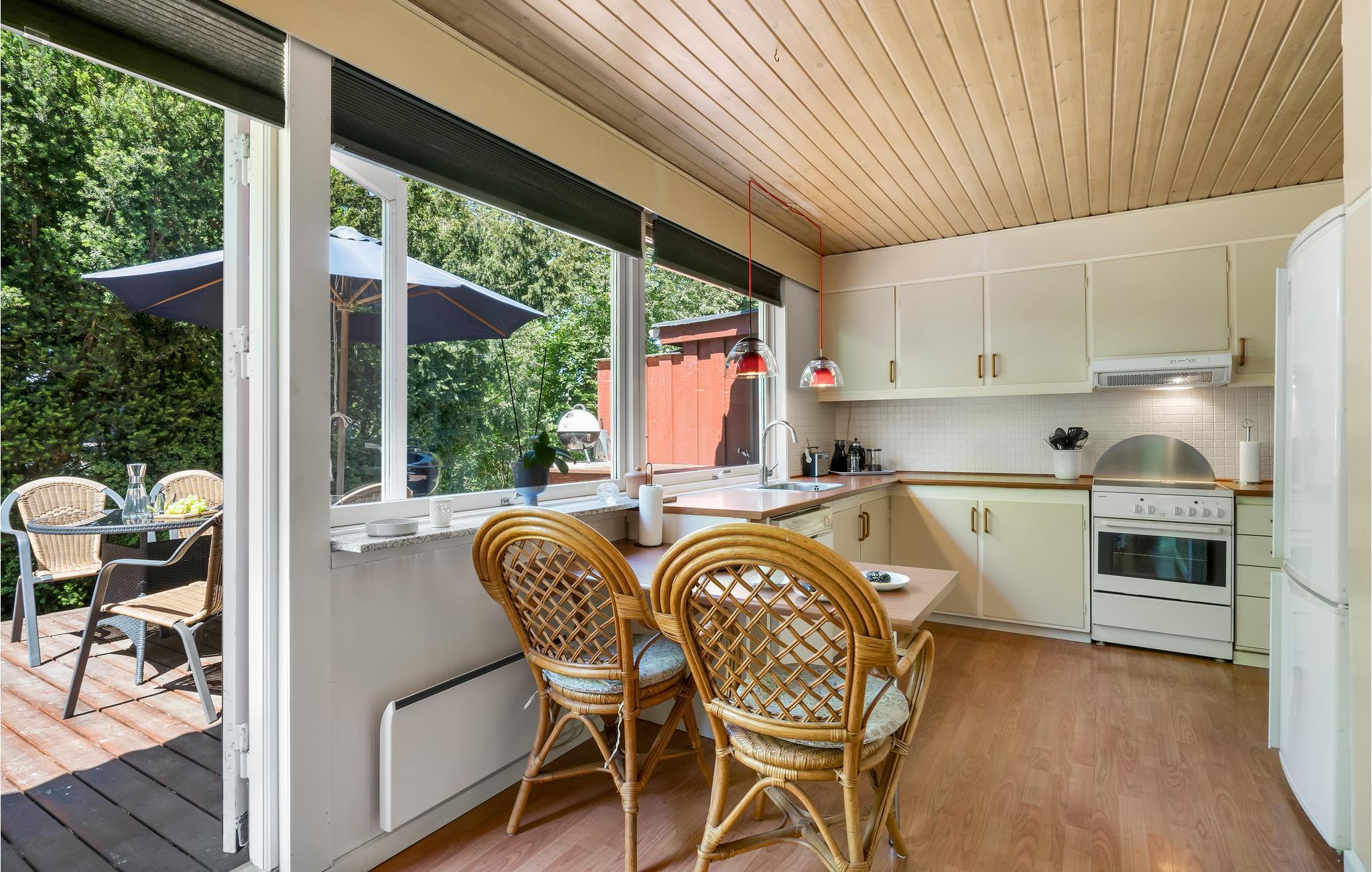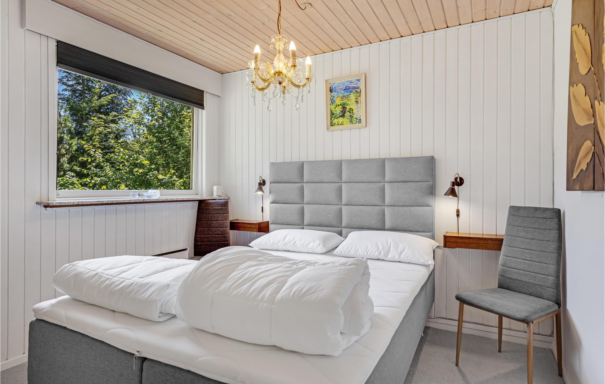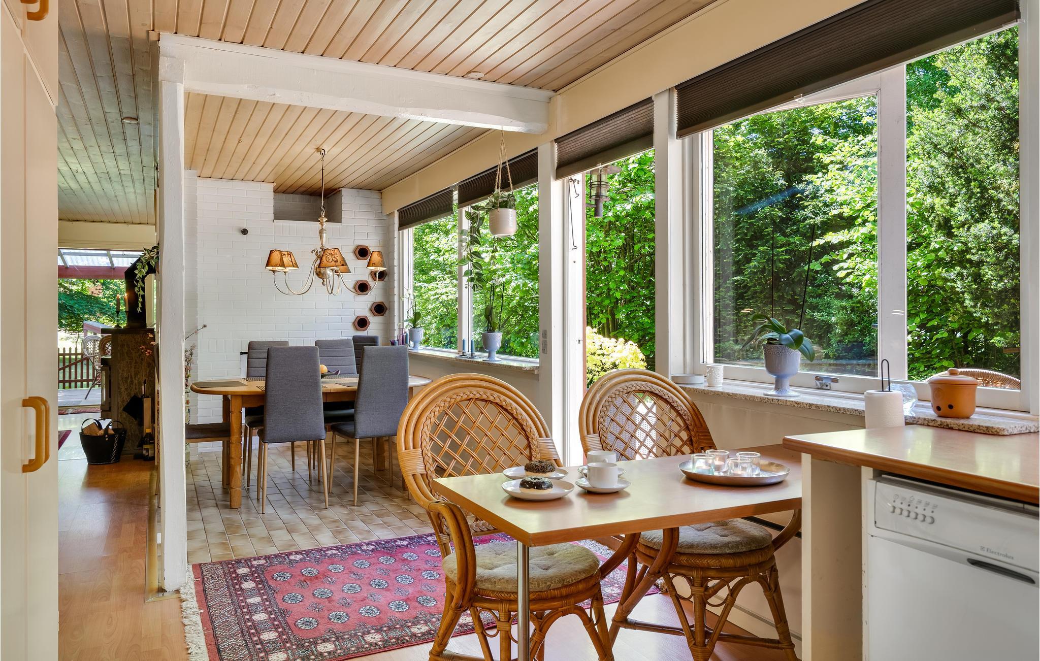 Huset byder jer velkommen på en smuk beliggenhed midt i skovområdet, Fredskoven. De hyggelige, lyse rum med en varm atmosfære lover familiehygge, ro og afkobling. Nyd måltiderne med en smuk udsigt over haven, hvor søde rådyr, egern og fasaner jævnligt kommer på besøg. Sæt jer godt til rette med en film eller et spil og nyd ferieaftenerne, mens de knitrende flammer i brændeovnen spreder varme på kølige dage. Efter en tur på stranden er der ikke noget bedre end wellness i husets sauna. Rundt om huset er der flere dejlige steder at nyde solen. Grunden, der er omgivet af træer, giver masser af plads til sjovt samvær, og en aften med grillbøffer og bearnaisesauce er en fornøjelse for hele familien. Gå en tur til stranden og nyd det friske hav.