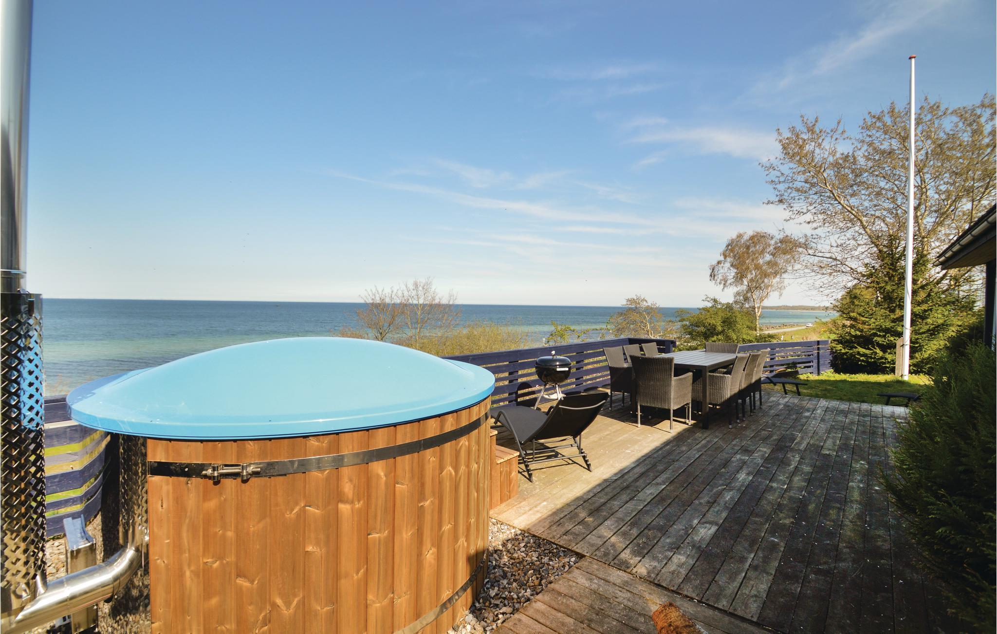 Med panoramaudsigt over Køge Bugt, ligger dette dejlige sommerhus. Huset er udstyret med komfortable møbler og gode senge. I det dejlige køkken finder I alt i moderne hjælpemidler, og fra den store stue har I en flot udsigt over vandet. Til huset hører en stor terrasse med panoramaudsigt samt en rigtig hyggelig grillhytte med plads til otte personer. Endvidere kan I sidde i det lækre, brændefyrede vildmarksbad på terrassen og nyde udsigten og måske også synet af den smukke stjernehimmel.