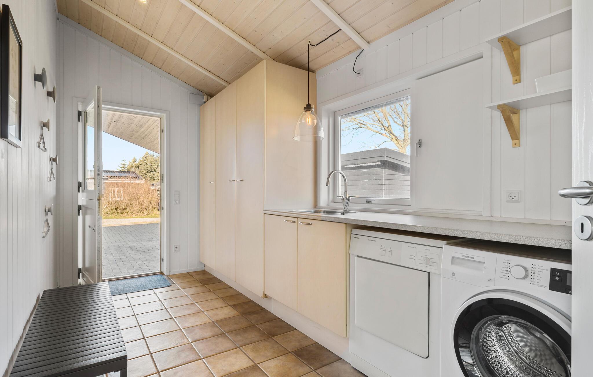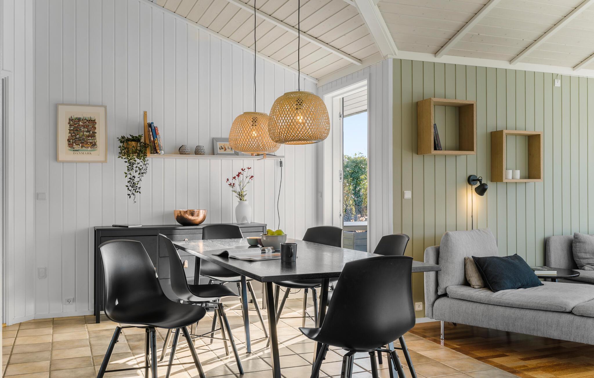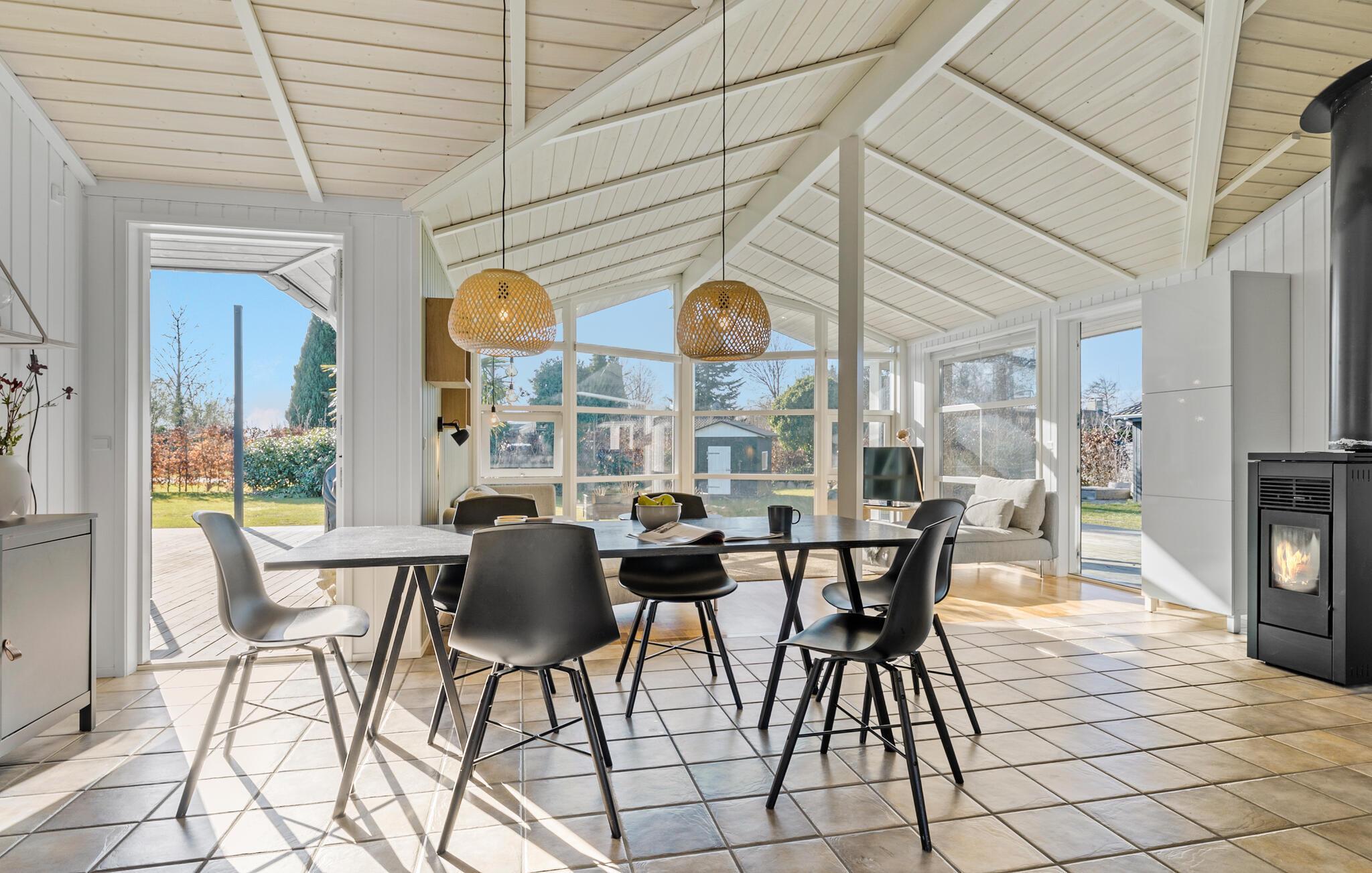 Dette charmerende feriehus kombinerer komfort og hygge og er det ideelle sted for en afslappende familieferie. begynd dagene med morgenmad sammen ved spisebordet, mens de store vinduesfronter slipper masser af dagslys ind og giver jer en smuk udsigt over haven. Det åbne køkken lægger op til at tilberede lækre måltider sammen. I den tilstødende opholdsstue kan I slappe af ved brændeovnens knitrende ild efter en begivenhedsrig dag og nyde husets hyggelige atmosfære. Glæd jer til en afslappende stund i spabadet efter dagens eventyr.