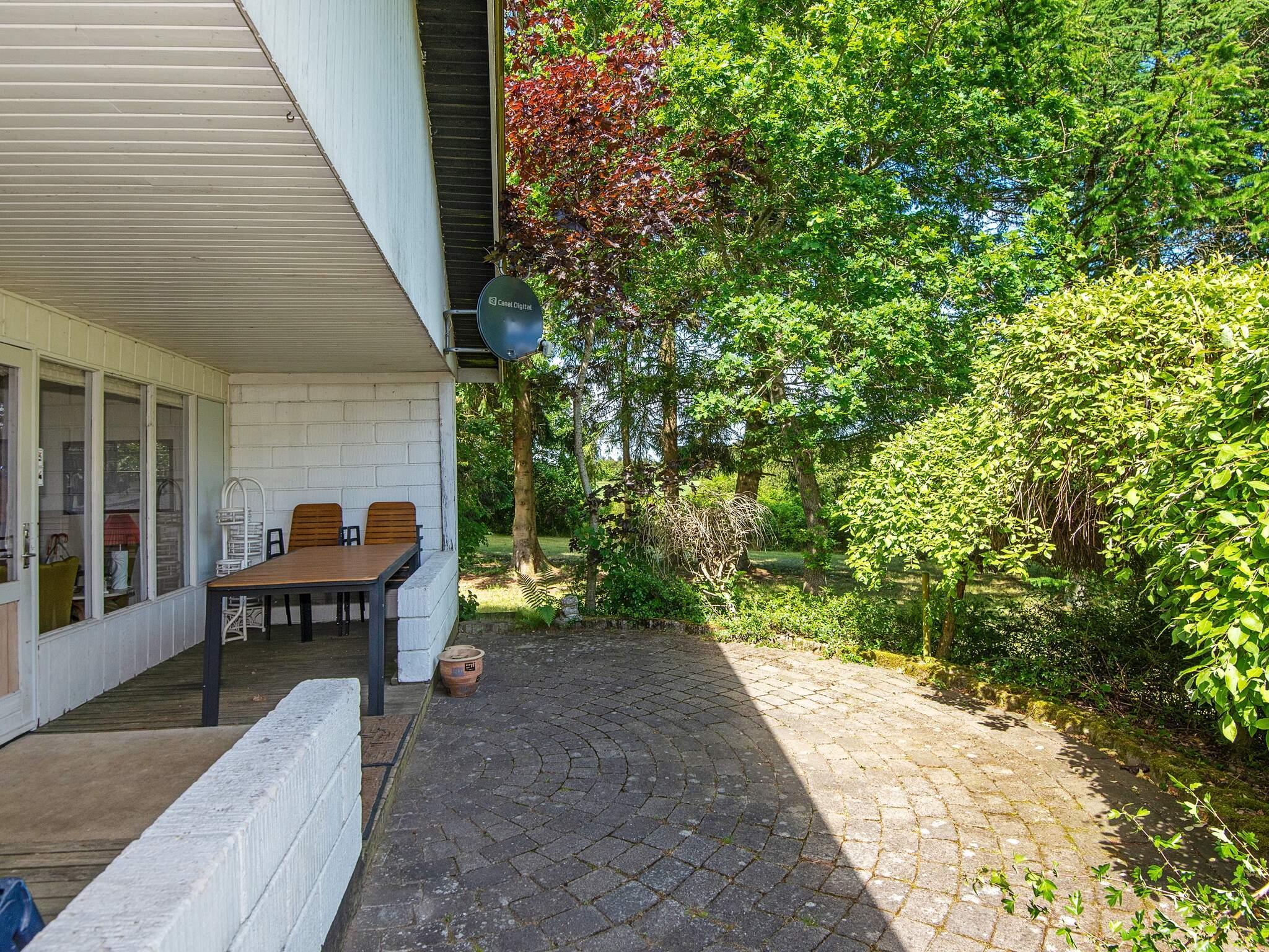 Charmerende sommerhus på stor naturgrund tæt på kysten med brændeovn og både åben og overdækket terrasse.