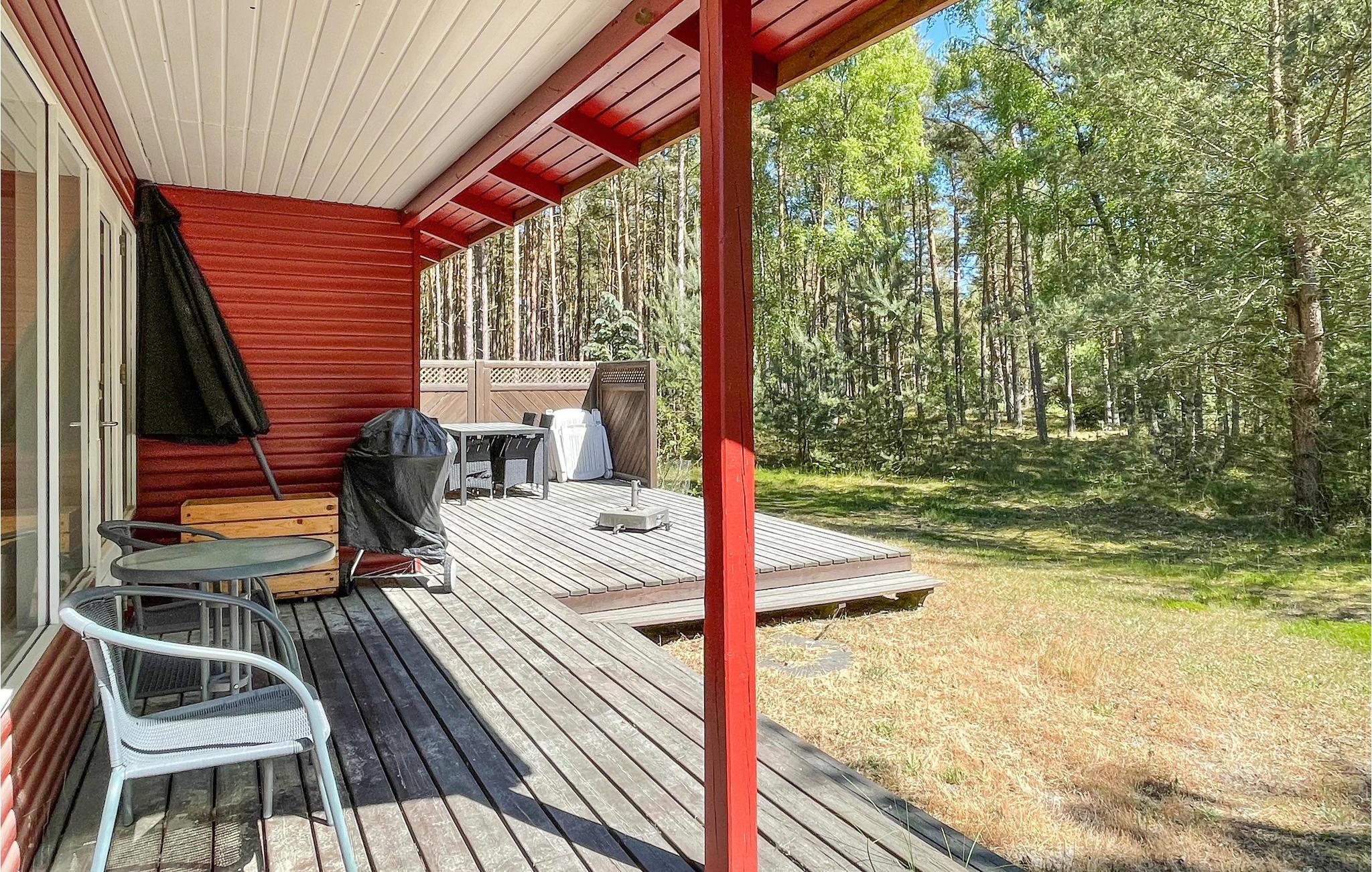 Charmerende træsommerhus tæt på børnevenlig sandstrand og med stor terrasse til afslapning i naturskønne omgivelser.