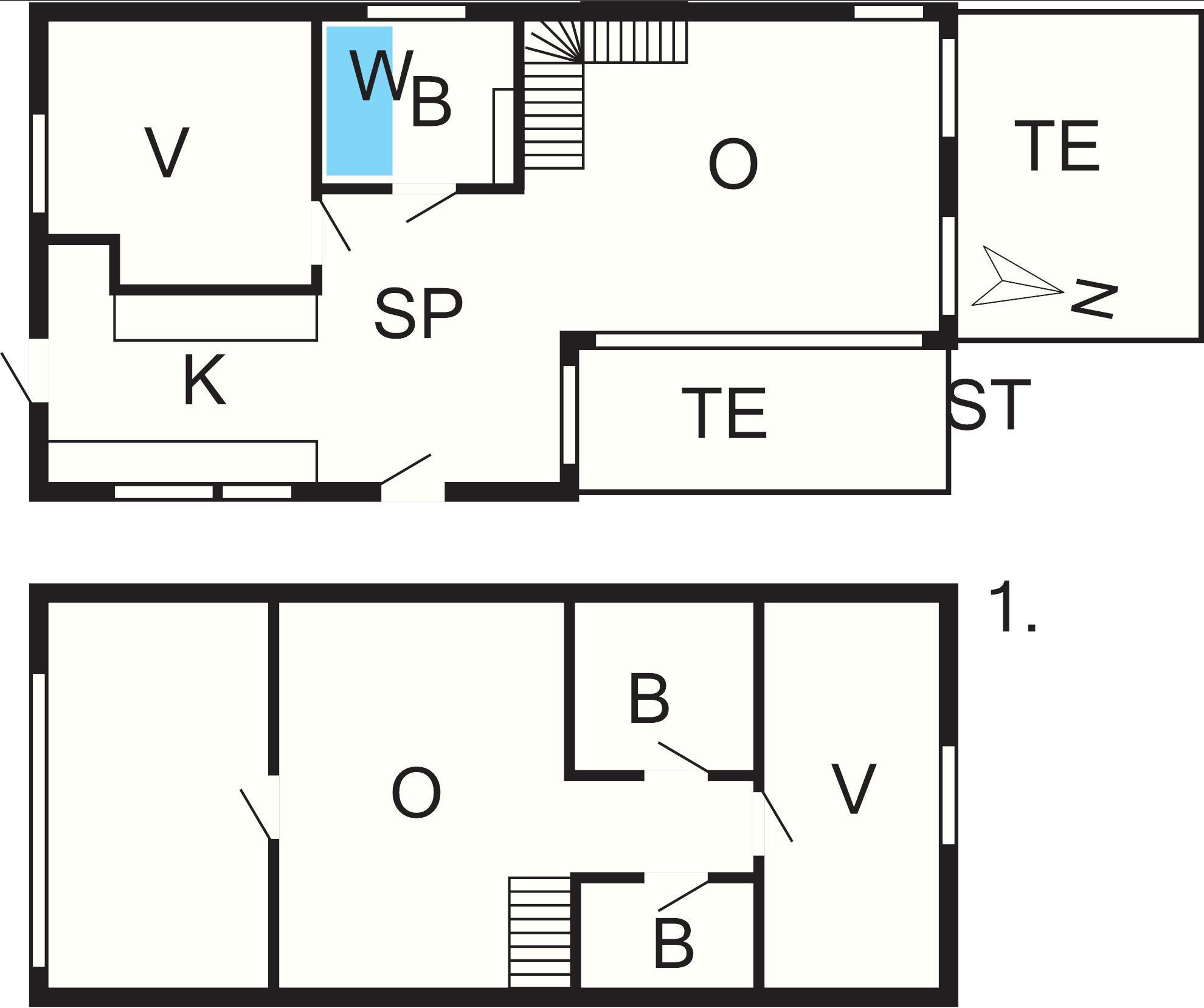 2 Soveværelser: (1DS)+(1DS), barneseng