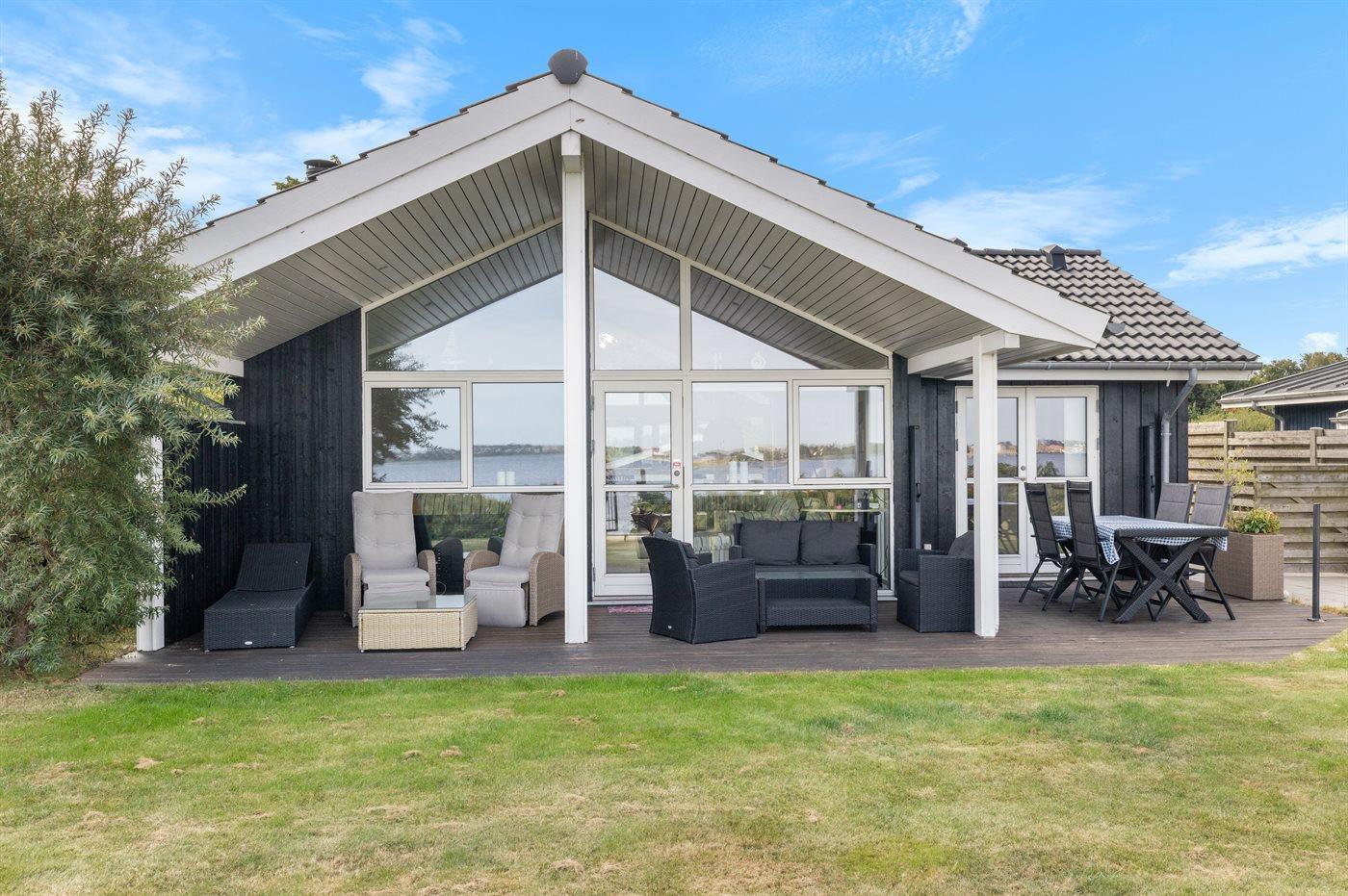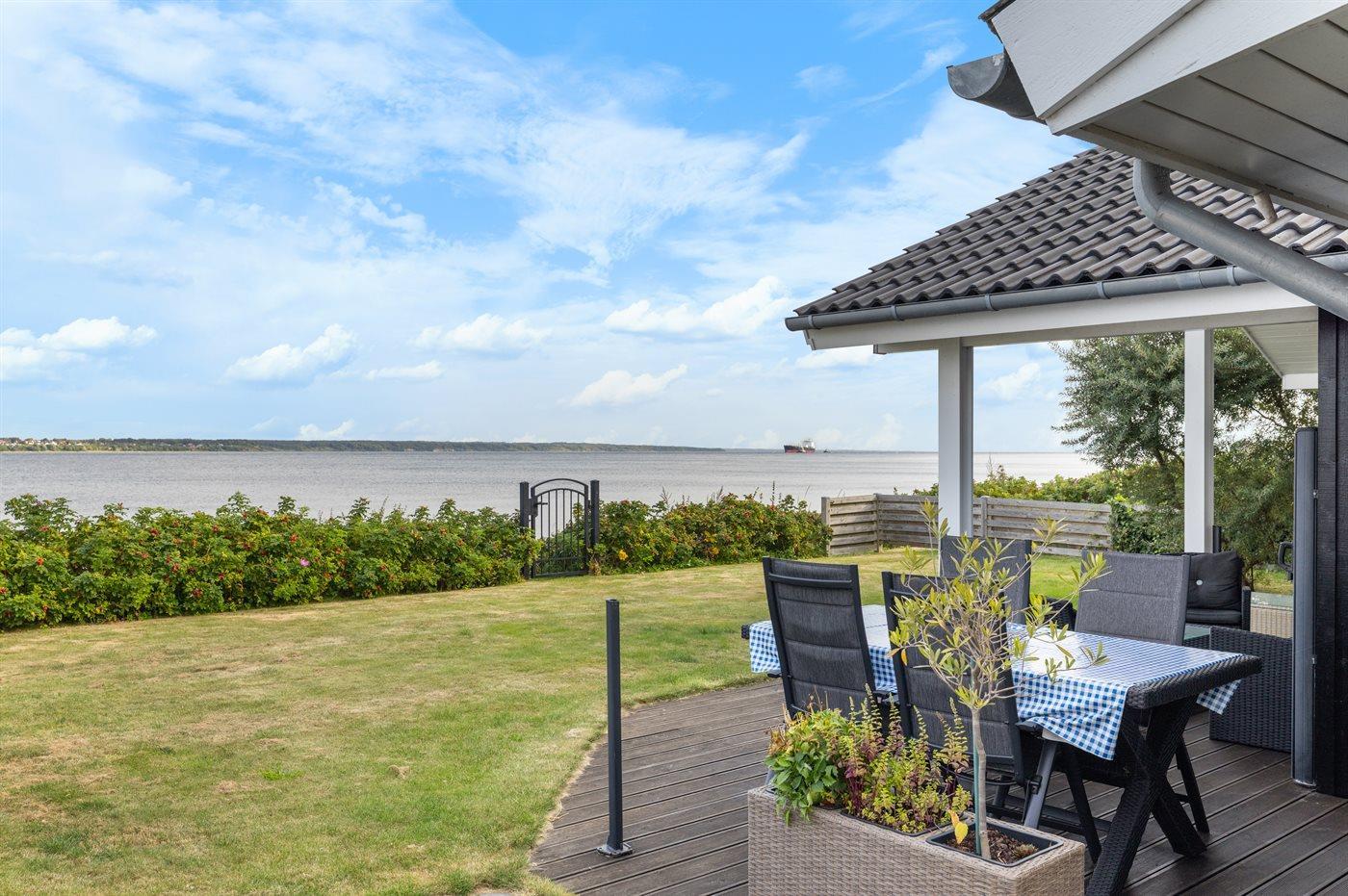 Fra både huset og terrassen foran huset, er der den flotteste udsigt ud over Lillebælt og området. Bag huset findes der en god terrasse med læ på dage med blæsevejr.