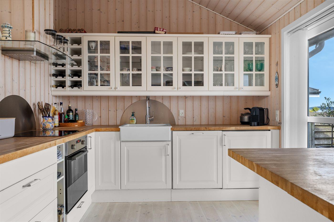 Køkkenet er udstyret med 1 køleskab. Der er 4 keramiske kogeplader, varmluftovn samt opvaskemaskine.