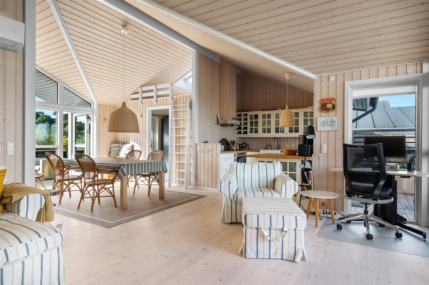 Huset er moderne og hyggeligt indrettet og indeholder ud over soveværelset en god hems, hvor du finder to sovepladser. Disse to sovepladser er grundet adgangsforholdene nok bedst egnet til et par unge mennesker.