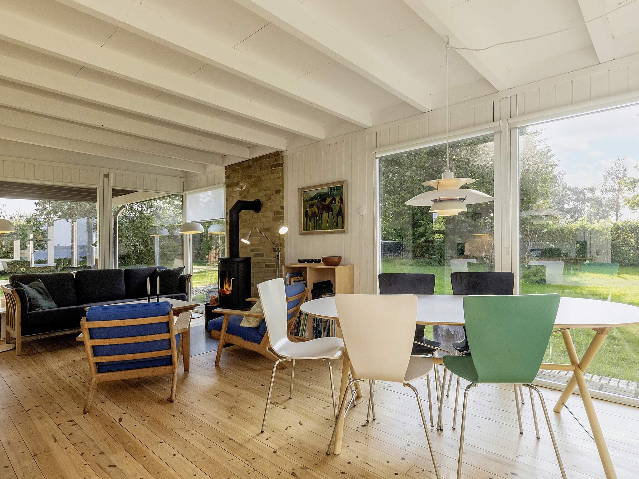 Stue og køkken i dette feriehus, oprindeligt bygget i 1973, er renoveret i 2020. Hyggelig stue med integreret køkken og udgang til overdækket terrasse med grill. Køkkenet er udstyret med vaskemaskine, opvaskemaskine, køle/fryseskab, komfur med ovn, mikroovn og kaffemaskine. Badeværelse med toilet, håndvask og bruseniche.